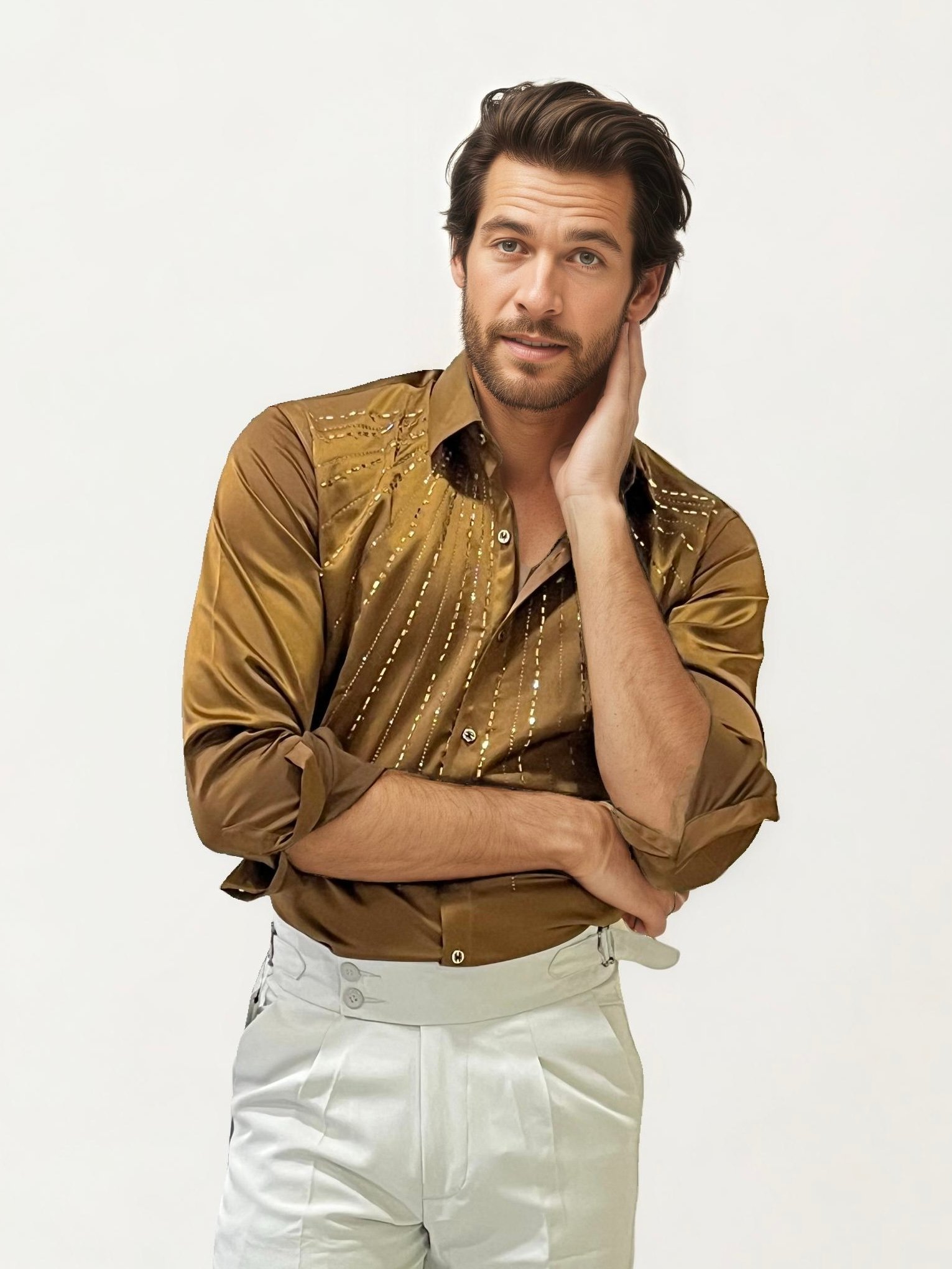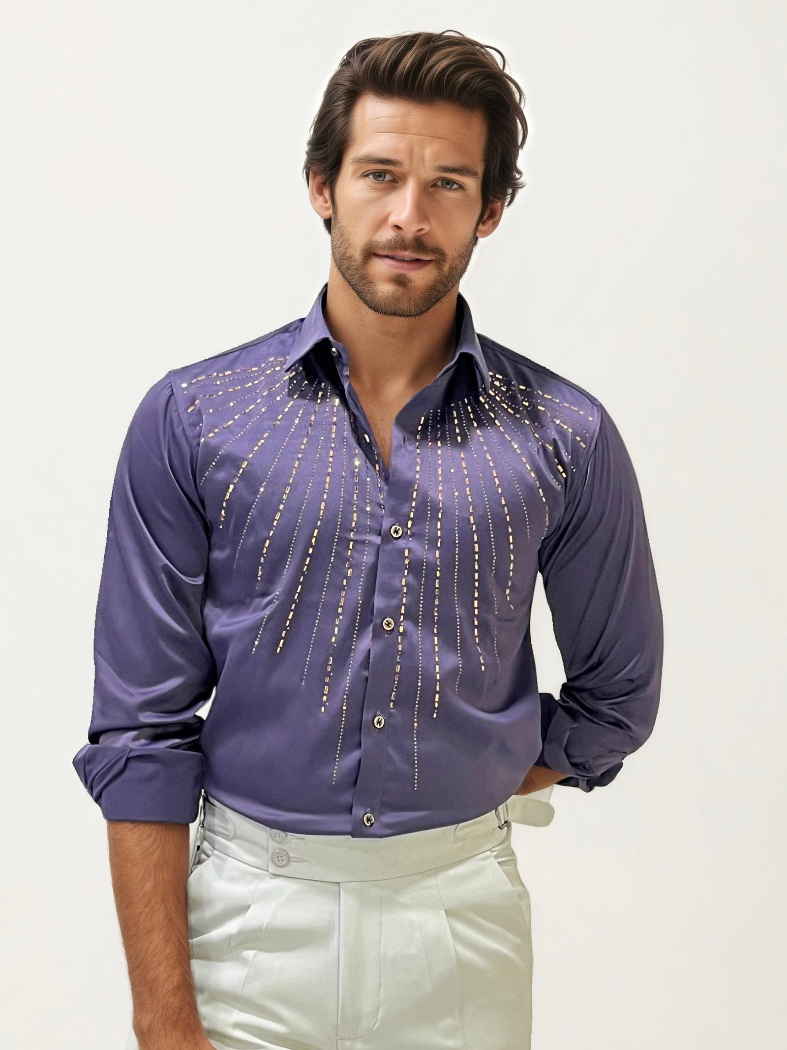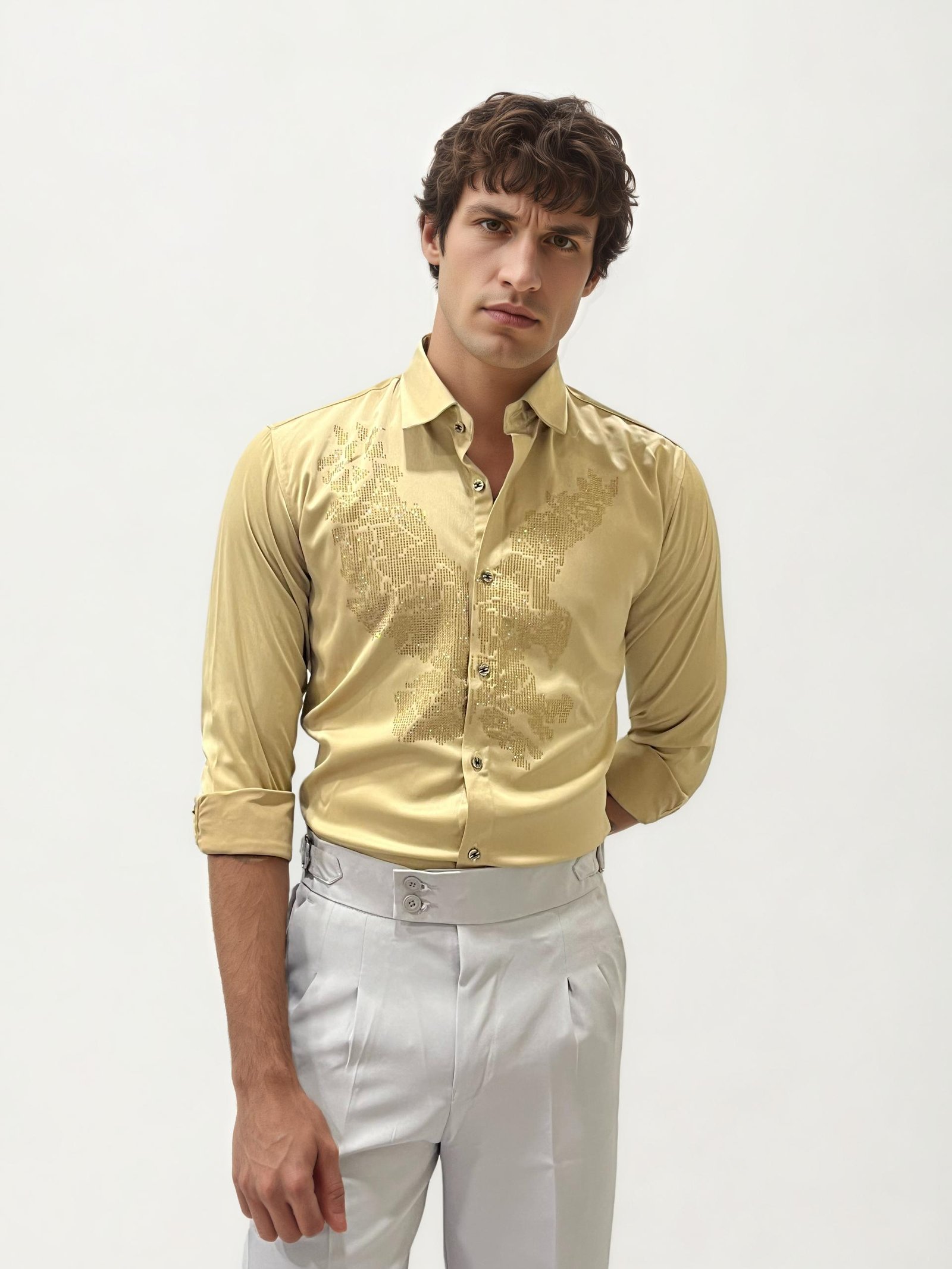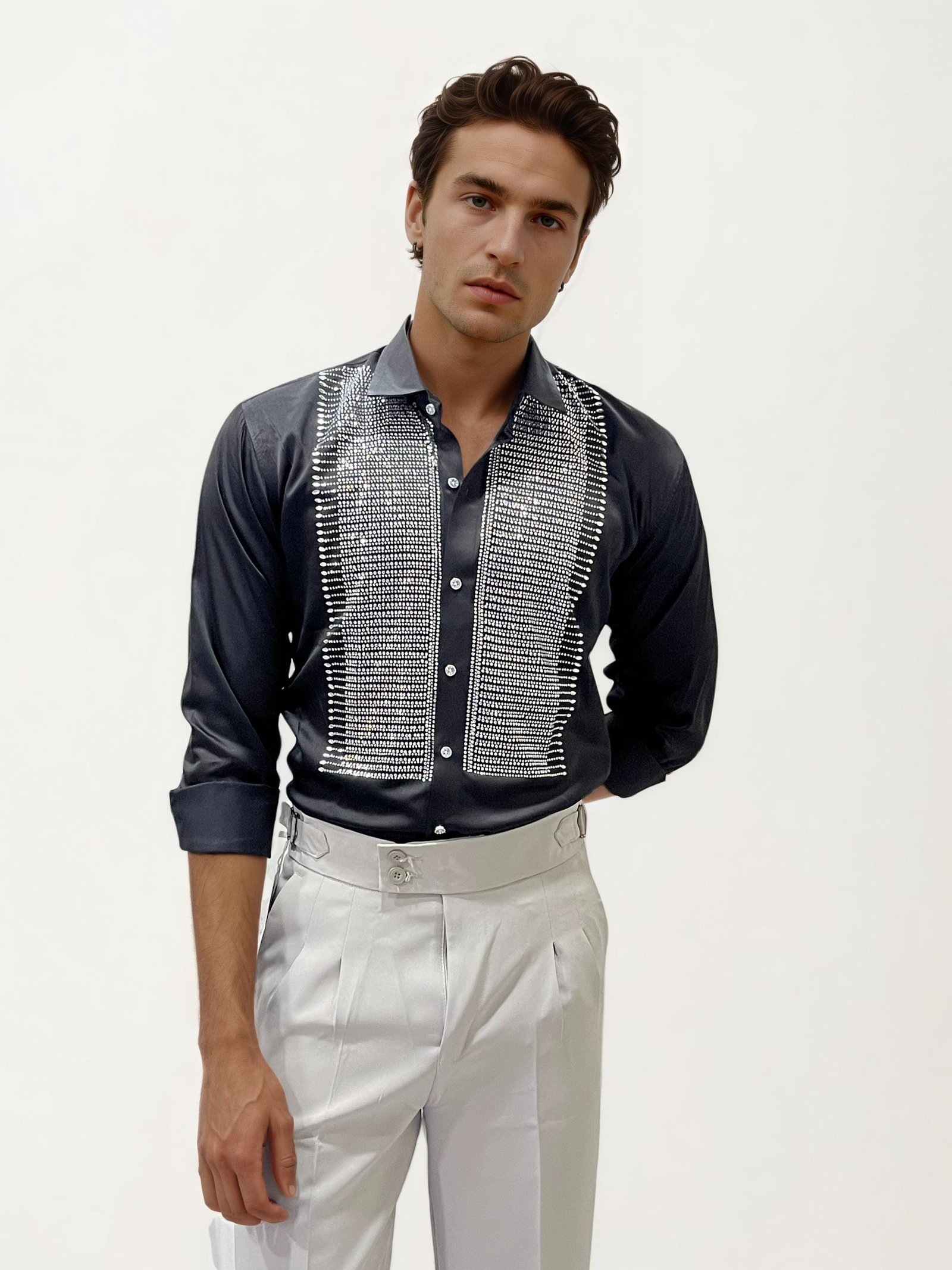₹1,399.00Shine through the night with this stone work party wear shirt. Designed to dazzle, this shirt features intricate stone embellishments that catch the light and attention in every setting. With a refined slim fit and smooth fabric finish, it delivers an elevated party look that blends glamour with class—perfect for celebrations, receptions, or a night out where style takes the…