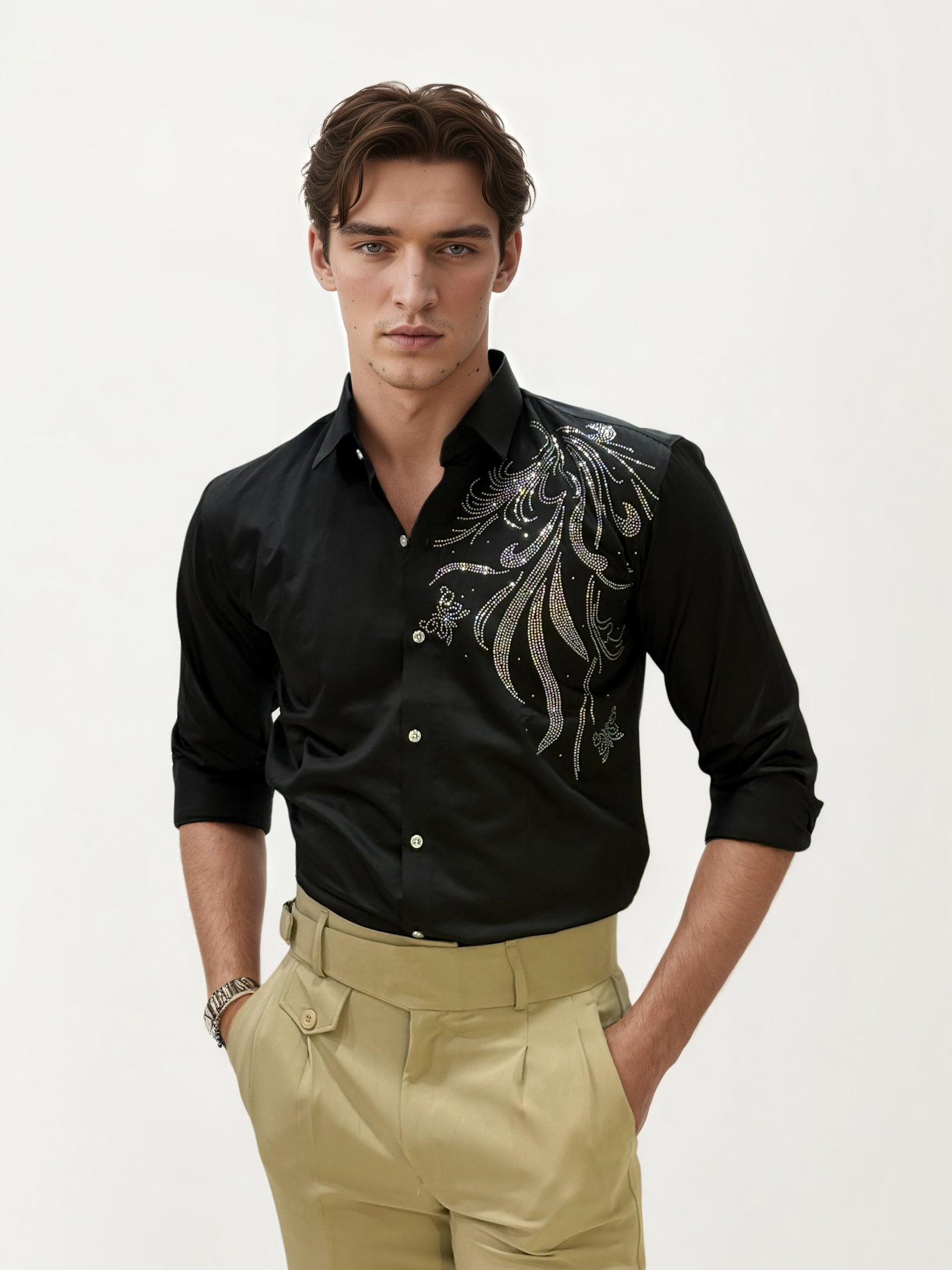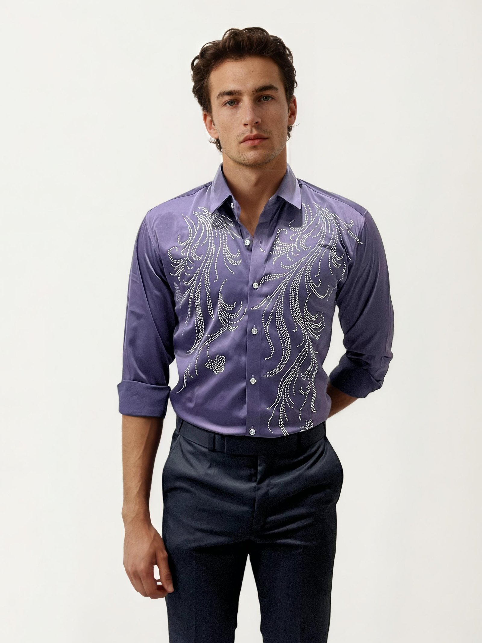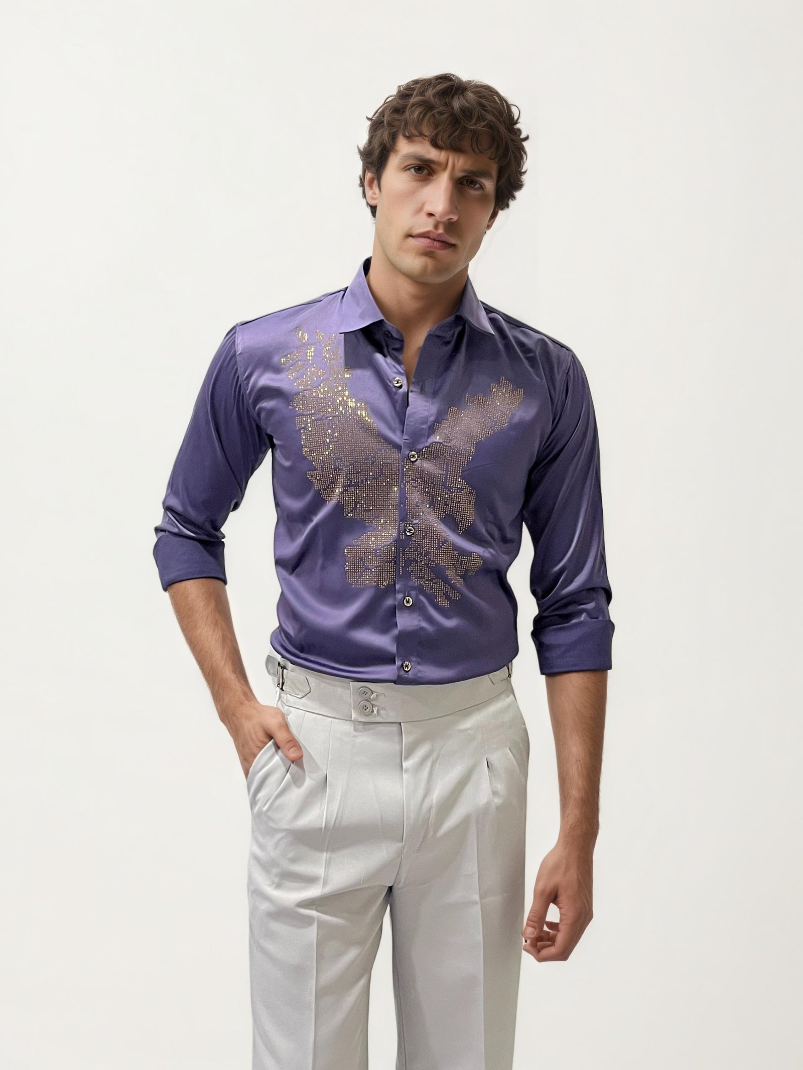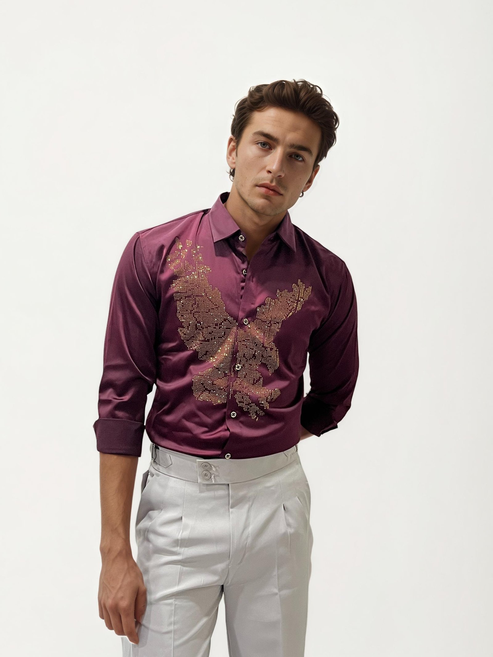 ₹1,399.00Shine through the night with this stone work party wear shirt. Designed to dazzle, this shirt features intricate stone embellishments that catch the light and attention in every setting. With a refined slim fit and smooth fabric finish, it delivers an elevated party look that blends glamour with class—perfect for celebrations, receptions, or a night out where style takes the…