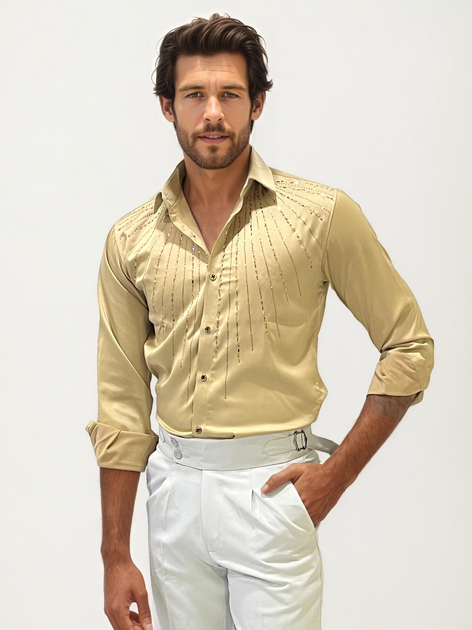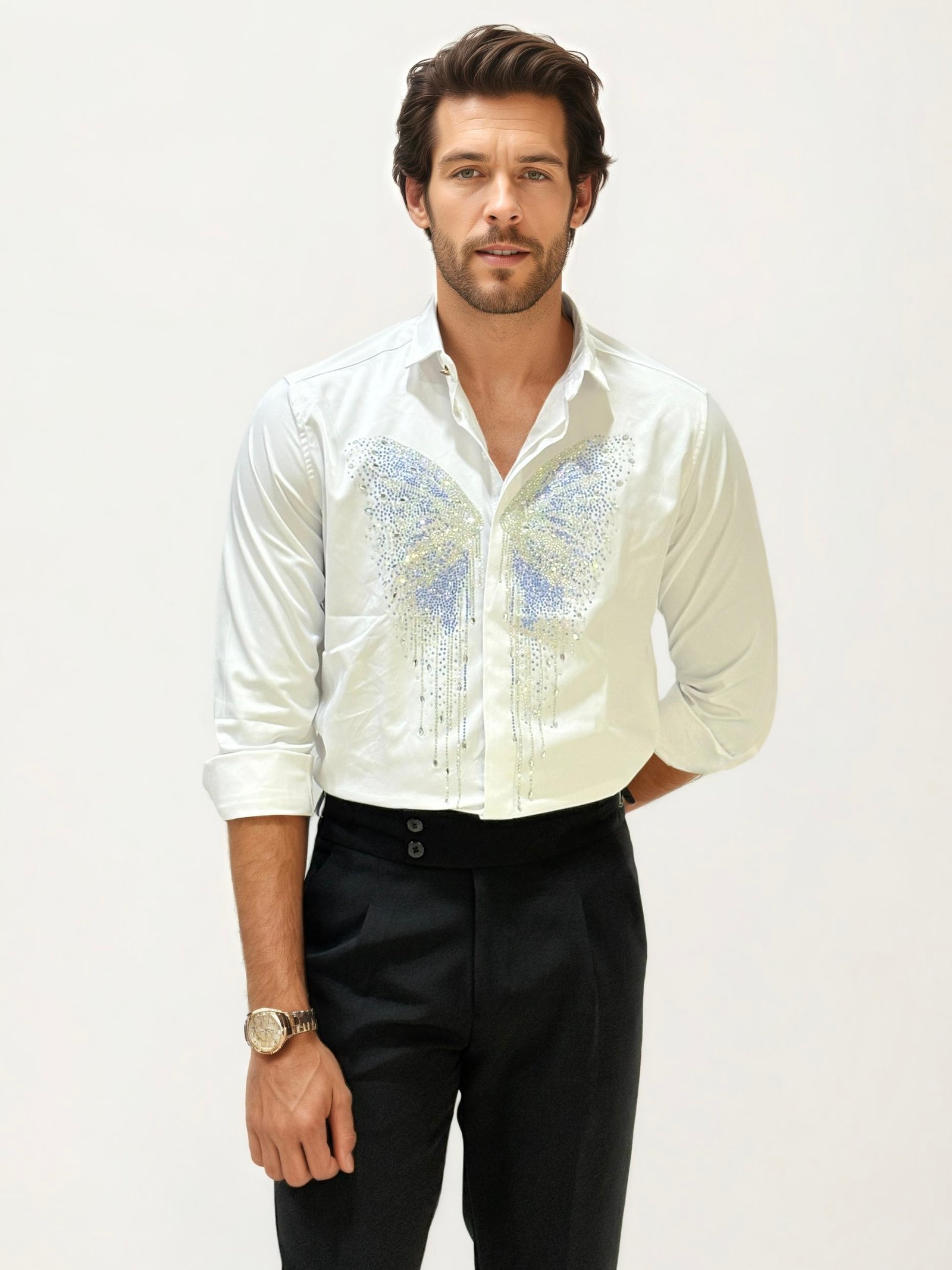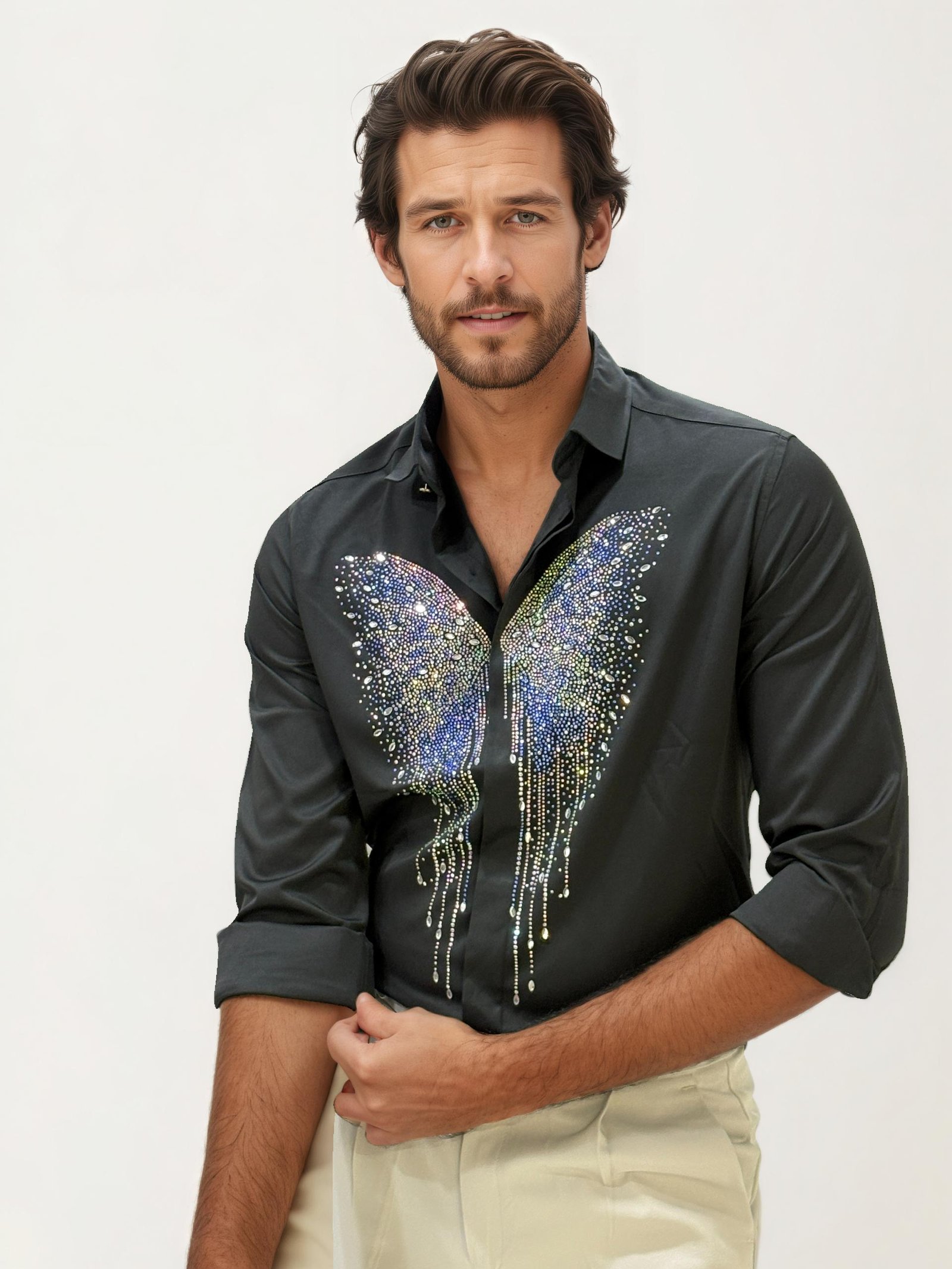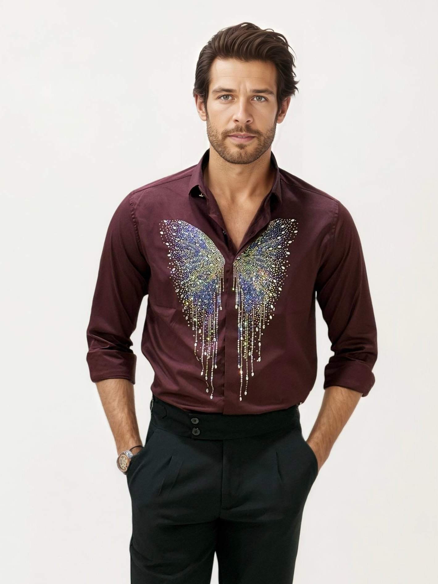 ₹1,399.00Shine through the night with this stone work party wear shirt. Designed to dazzle, this shirt features intricate stone embellishments that catch the light and attention in every setting. With a refined slim fit and smooth fabric finish, it delivers an elevated party look that blends glamour with class—perfect for celebrations, receptions, or a night out where style takes the…