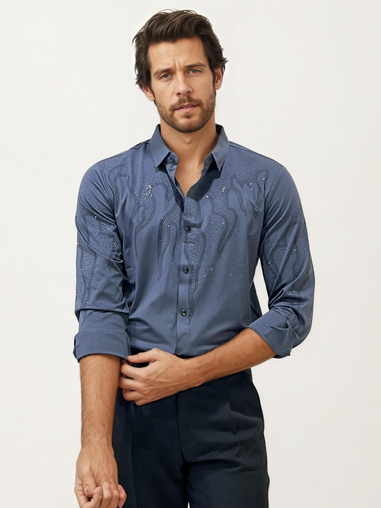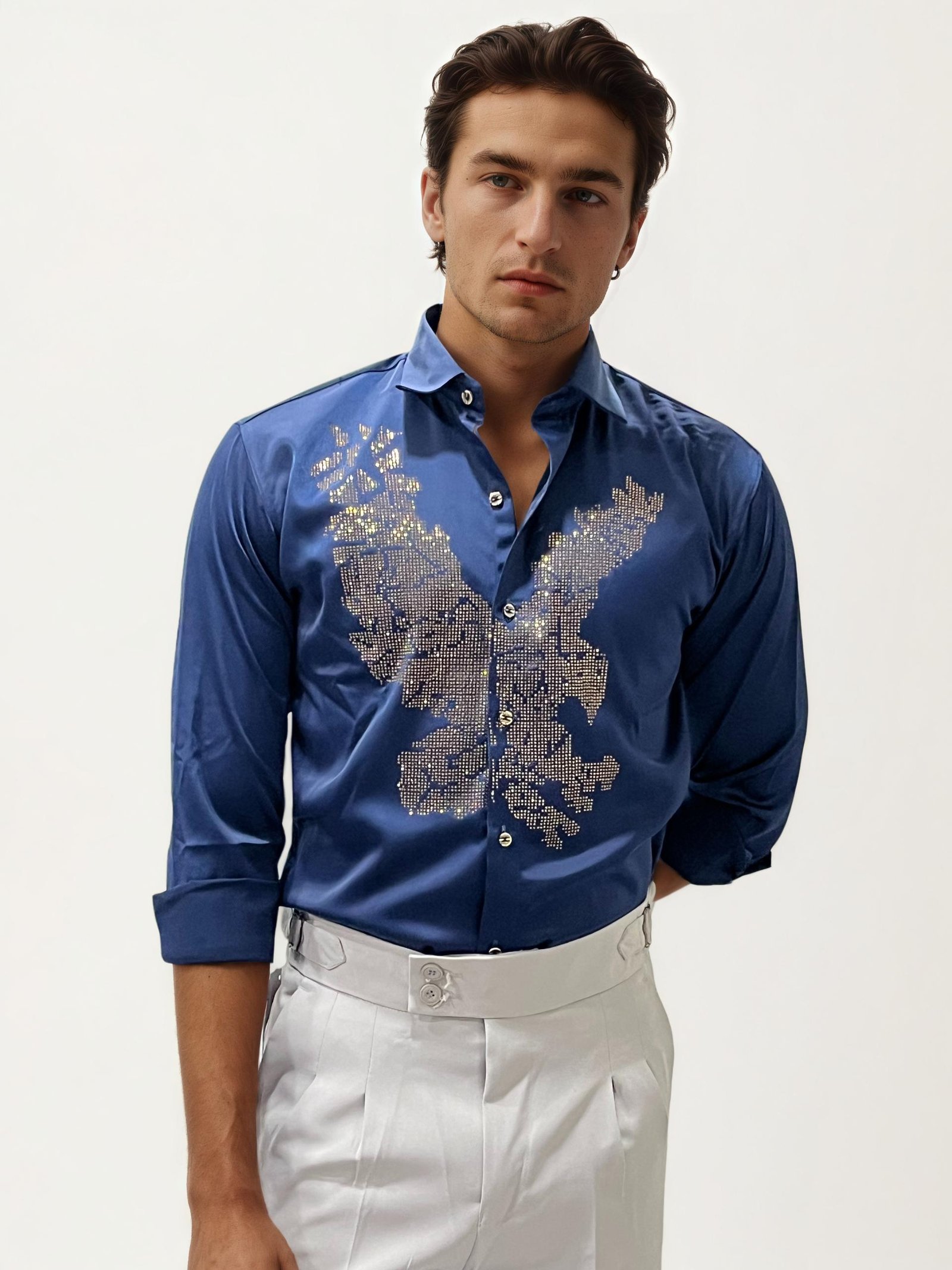Dark-Blue Stone Work Fullhand Party Wear Shirt