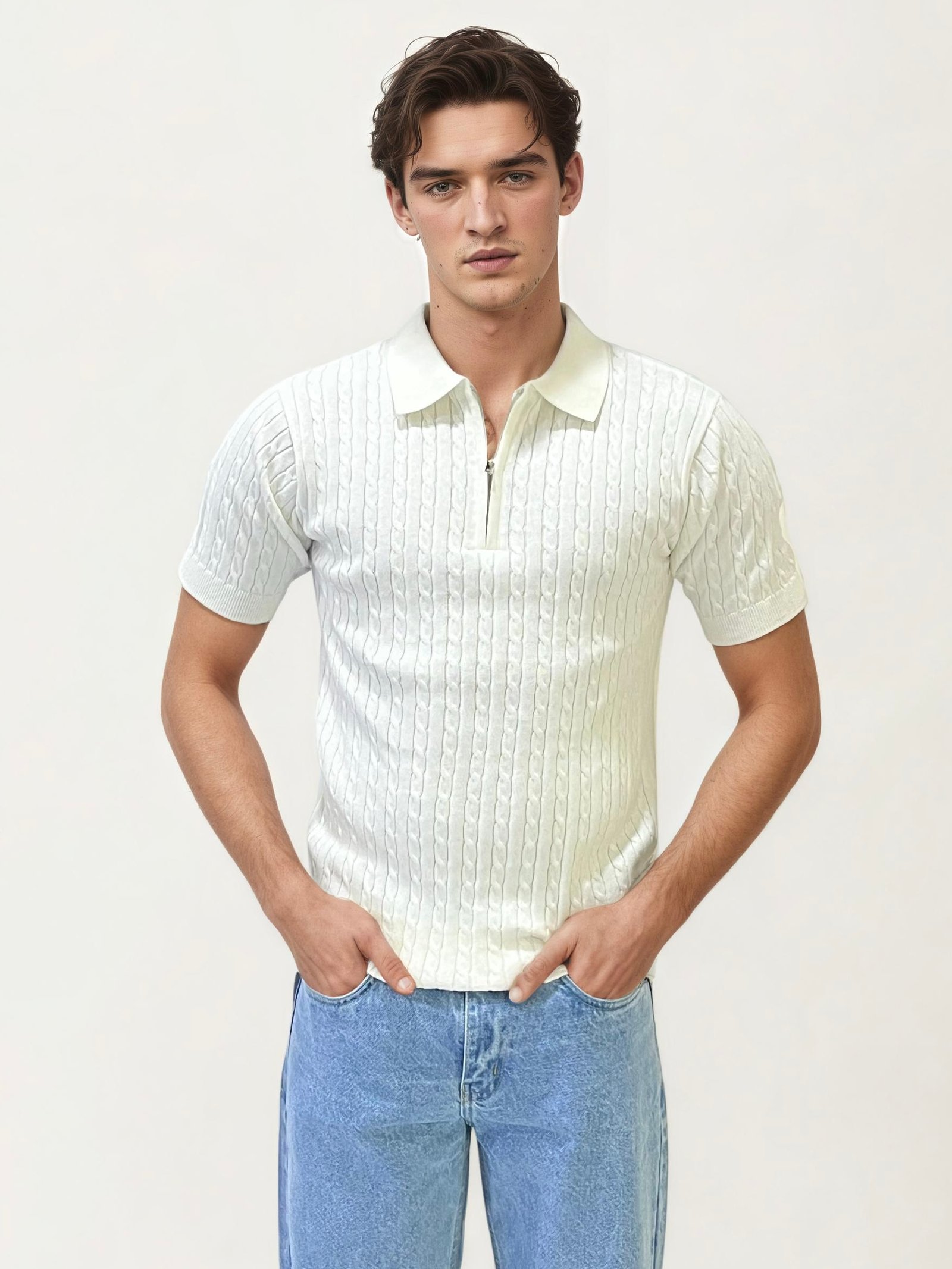 White Old-Money Zipper Fullhand T-Shirt