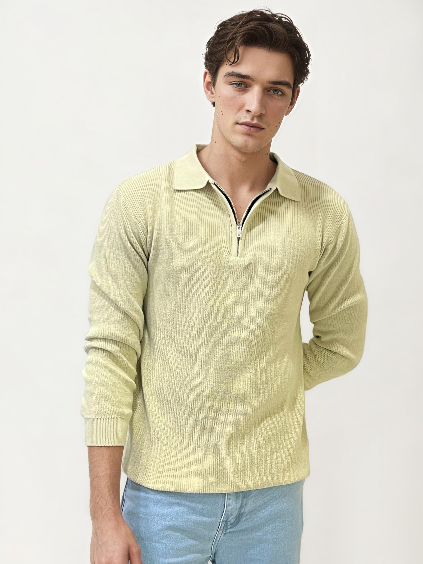 Green Half Zip Knitted Polo Shirt