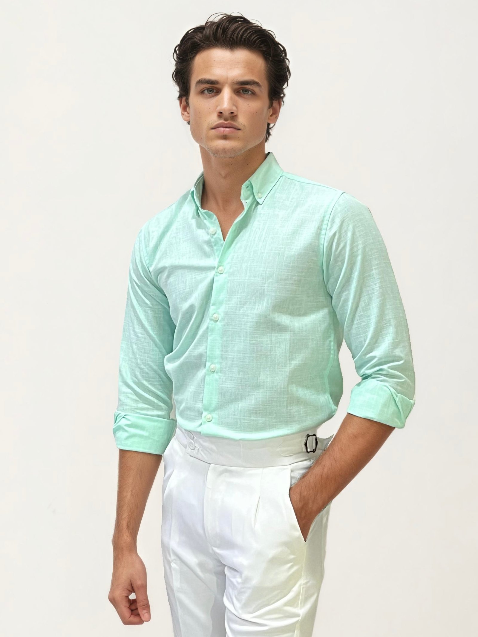 Light Green Plain Formal Shirts