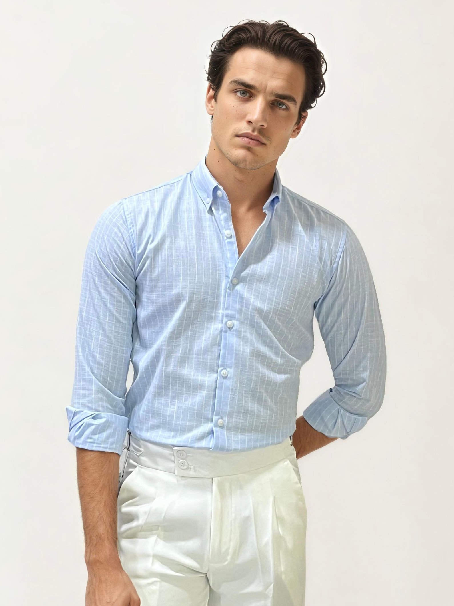 Light Blue Linen Striped Fullhand Shirt
