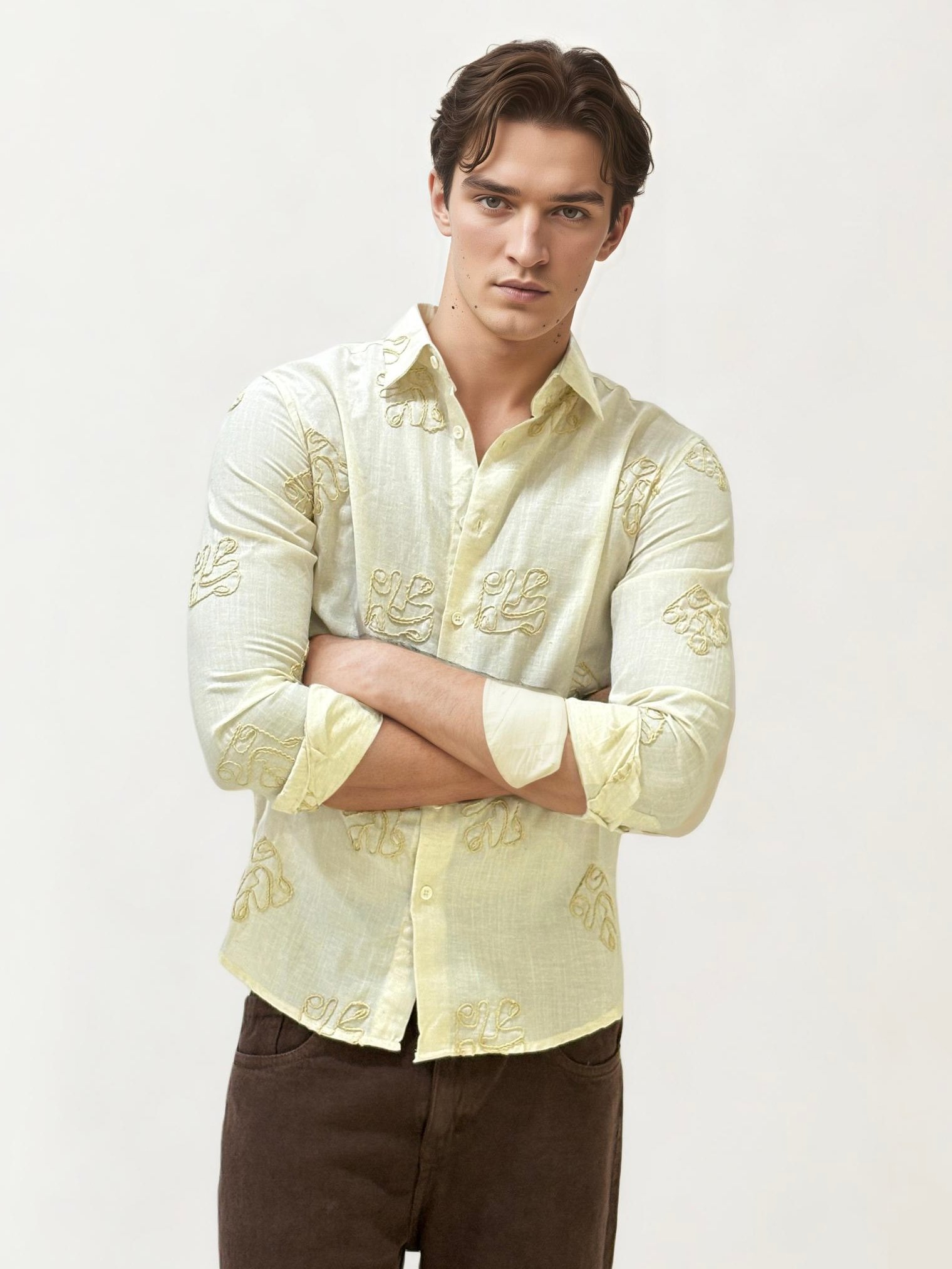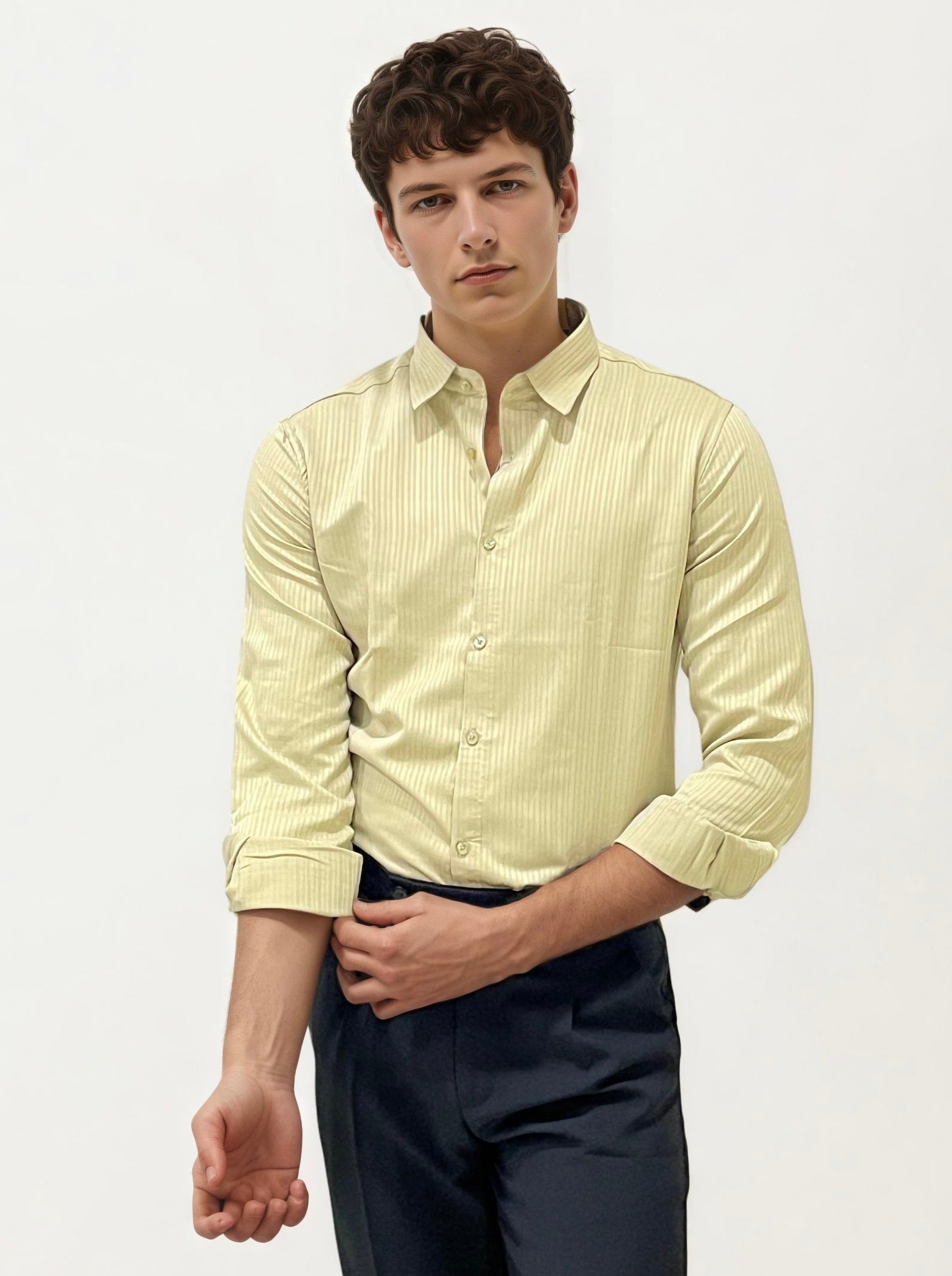 Light Yellow Mandarin Collar Fullhand Shirt
