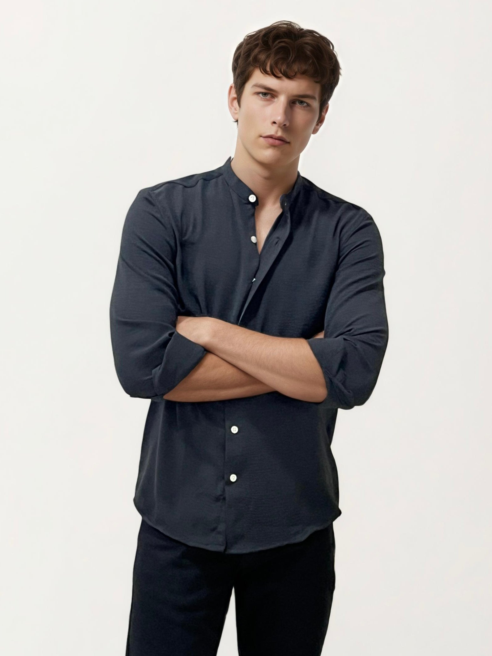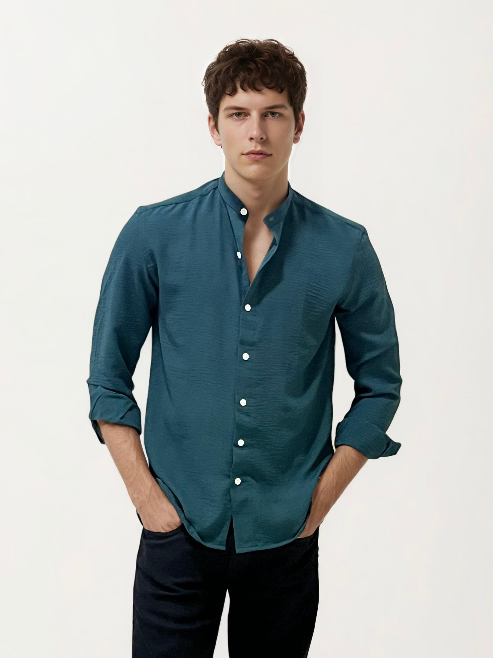 ₹999.00Exude timeless elegance with this full-hand mandarin collar plain shirt. Designed with a sleek, minimal profile, it blends classic sophistication with modern versatility, making it perfect for office wear, formal occasions, or smart-casual outings. Its crisp tailoring and clean lines ensure you look sharp and refined, no matter the setting. Key Features: • Mandarin collar for a distinguished, contemporary look…