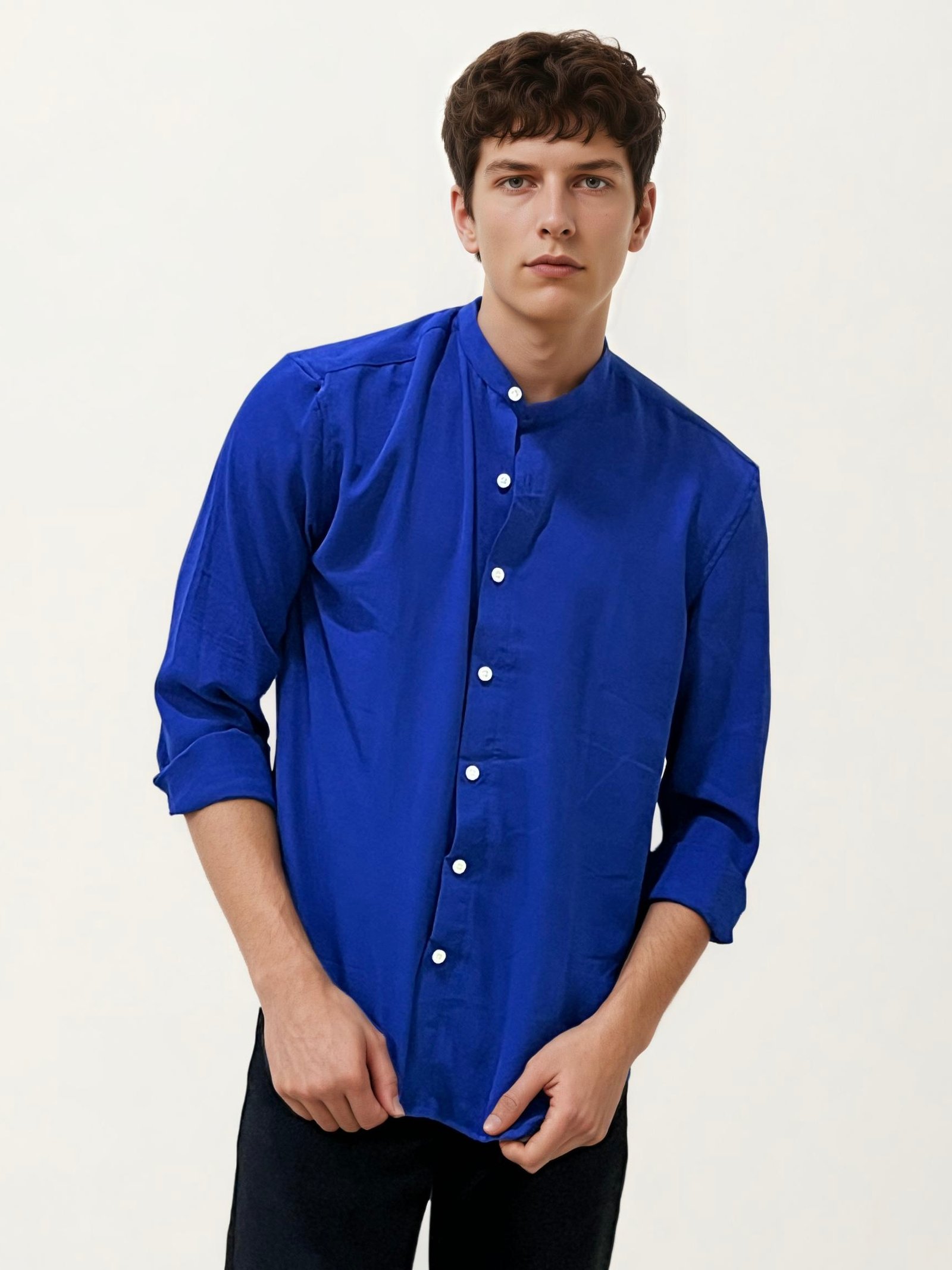 ₹1,099.00Exude timeless elegance with this full-hand mandarin collar plain shirt. Designed with a sleek, minimal profile, it blends classic sophistication with modern versatility, making it perfect for office wear, formal occasions, or smart-casual outings. Its crisp tailoring and clean lines ensure you look sharp and refined, no matter the setting. Key Features: • Mandarin collar for a distinguished, contemporary look…