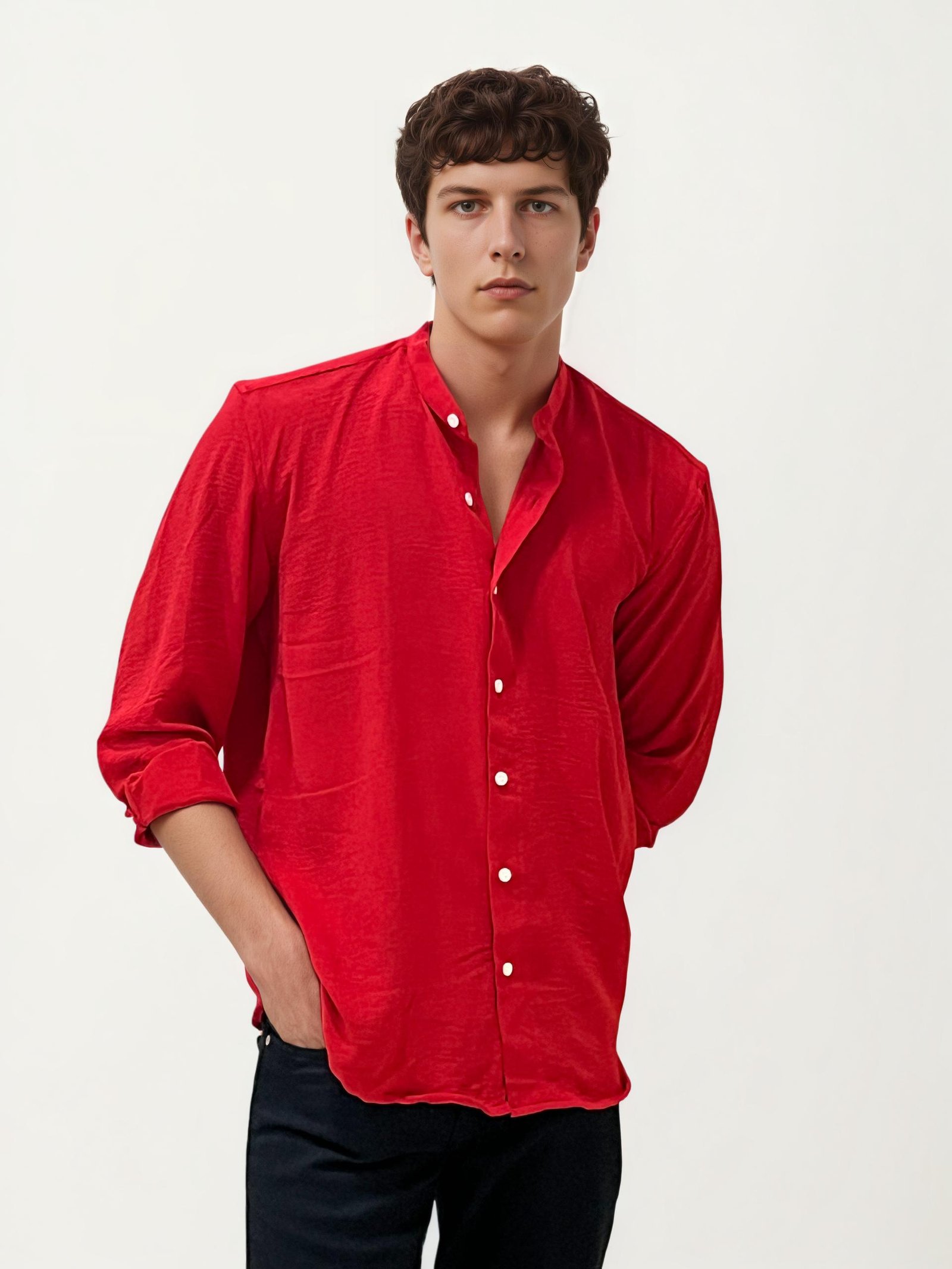 Red Mandarin Collar Fullhand Shirt