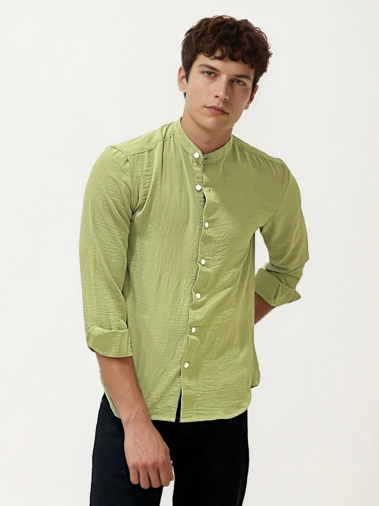 Pista Green Mandarin Collar Fullhand Shirt