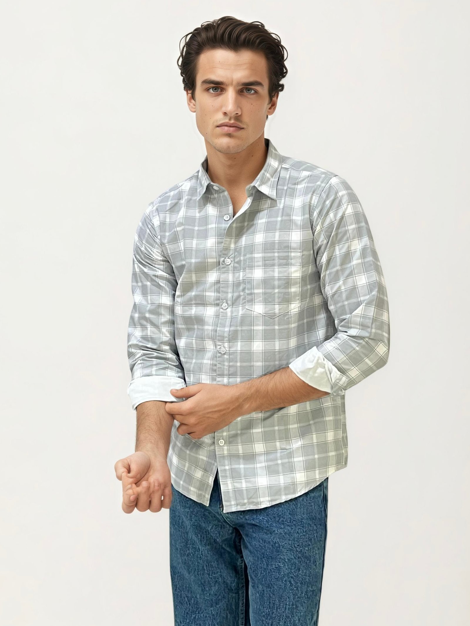 Grey-White Checked Fullhand Shirt