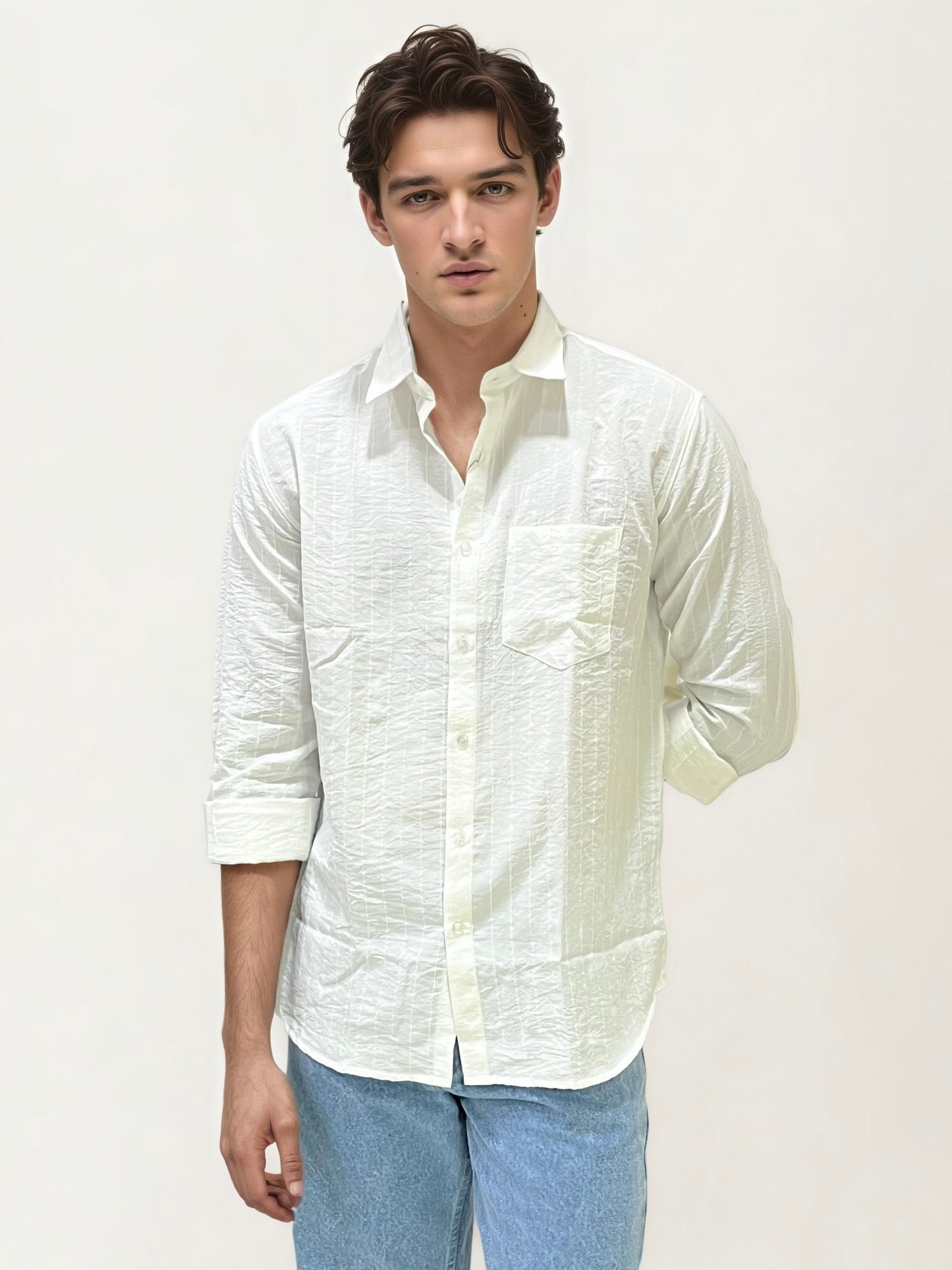 ₹999.00Stand out with our Crushed Line Shirt — a modern take on classic casualwear. Crafted from lightweight, breathable fabric with a naturally crinkled finish, this shirt adds depth and effortless style to your everyday look. The vertical crushed lines give a structured yet relaxed appearance, making it perfect for everything from weekend outings to casual Fridays at work. Features: Soft,…