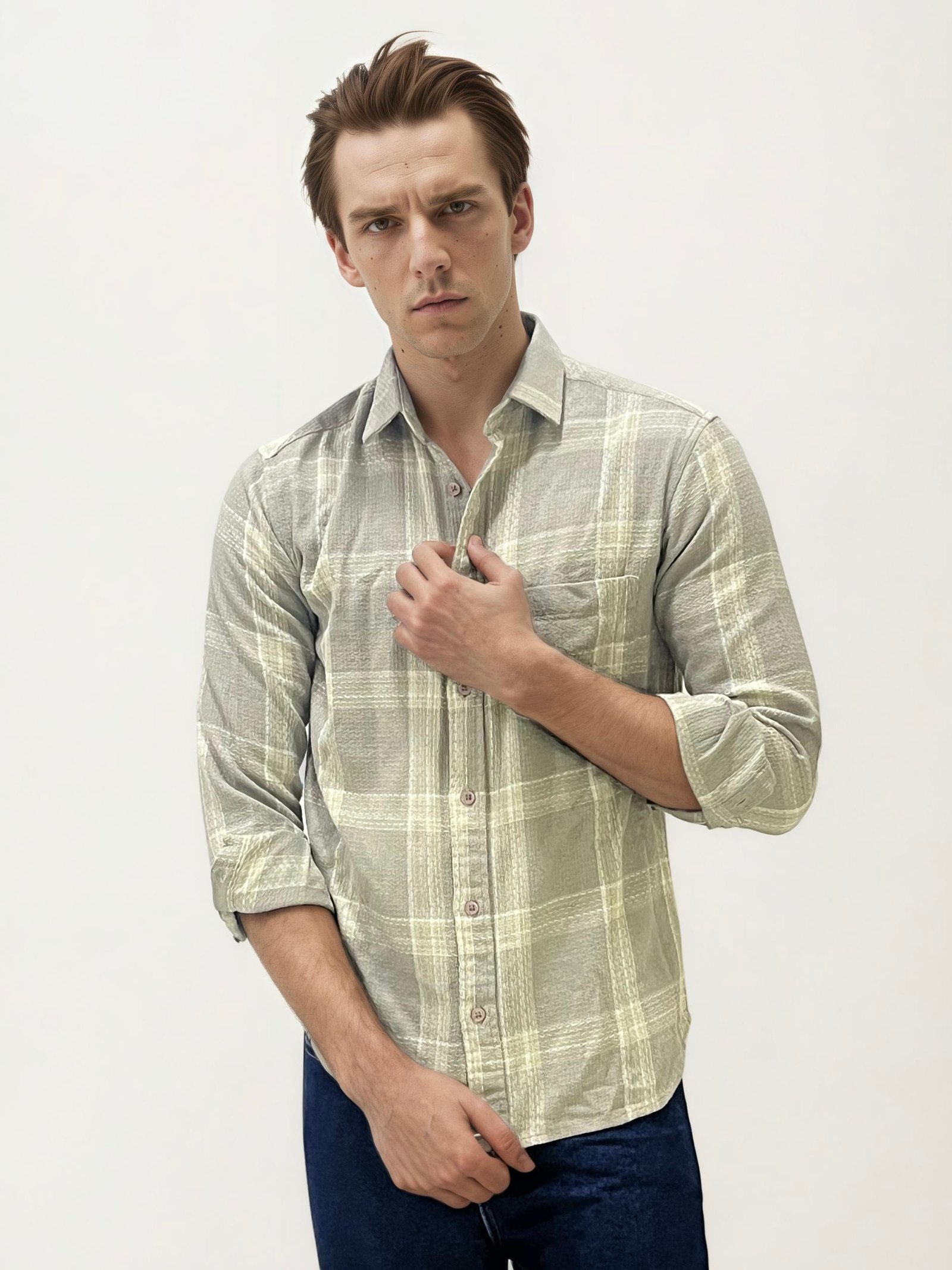 ₹1,099.00Subtle. Sophisticated. Stylish. This self-textured shirt is designed for the modern man who appreciates detail without the drama. The fine textured weave adds depth and elegance, making it a perfect choice for both office wear and evening outings. Highlights: Soft fabric with self-textured finish Clean, minimal design with premium buttons Slim yet comfortable fit Styling Tip:Pair it with tailored trousers…
