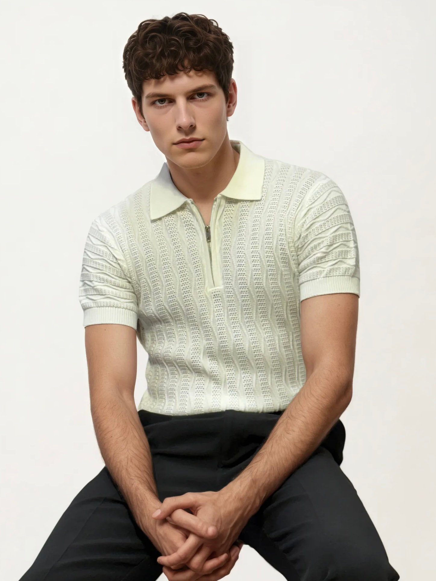 ₹999.00Refresh your smart-casual lineup with this half zip knitted polo shirt. Combining the relaxed charm of a polo with the sleekness of a zip-up, this shirt features a soft knit texture that offers both comfort and understated style. Ideal for weekend brunches, casual Fridays, or laid-back evenings, it’s a refined staple with a modern twist. Key Features: • Knitted fabric…