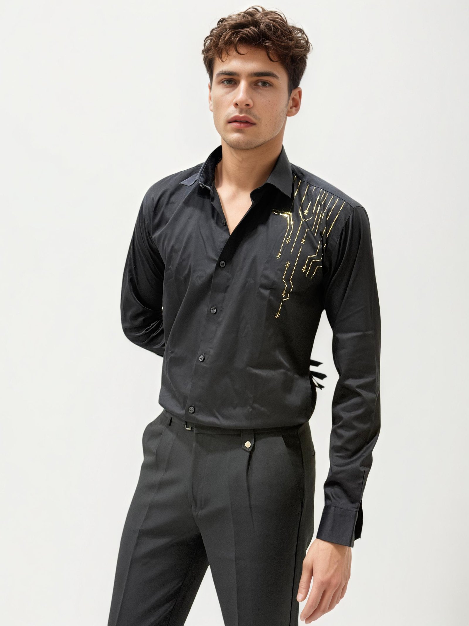 Make a bold entrance with this sticker party wear shirt. Designed to stand out, this shirt features eye-catching sticker-style prints that bring a playful edge to your party look. Crafted with a sleek silhouette and smooth fabric, it strikes the perfect balance between fun and finesse—ideal for festive nights, celebrations, or whenever you’re in the mood to turn heads.