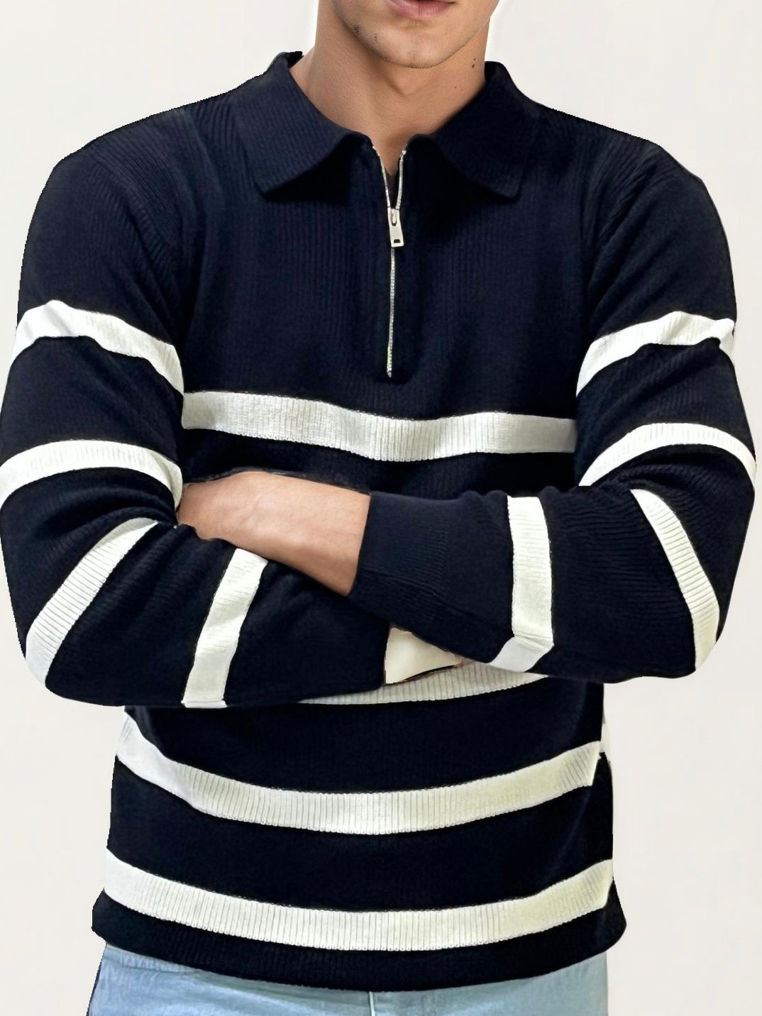 Black-White Zipper Fullhand T-Shirt