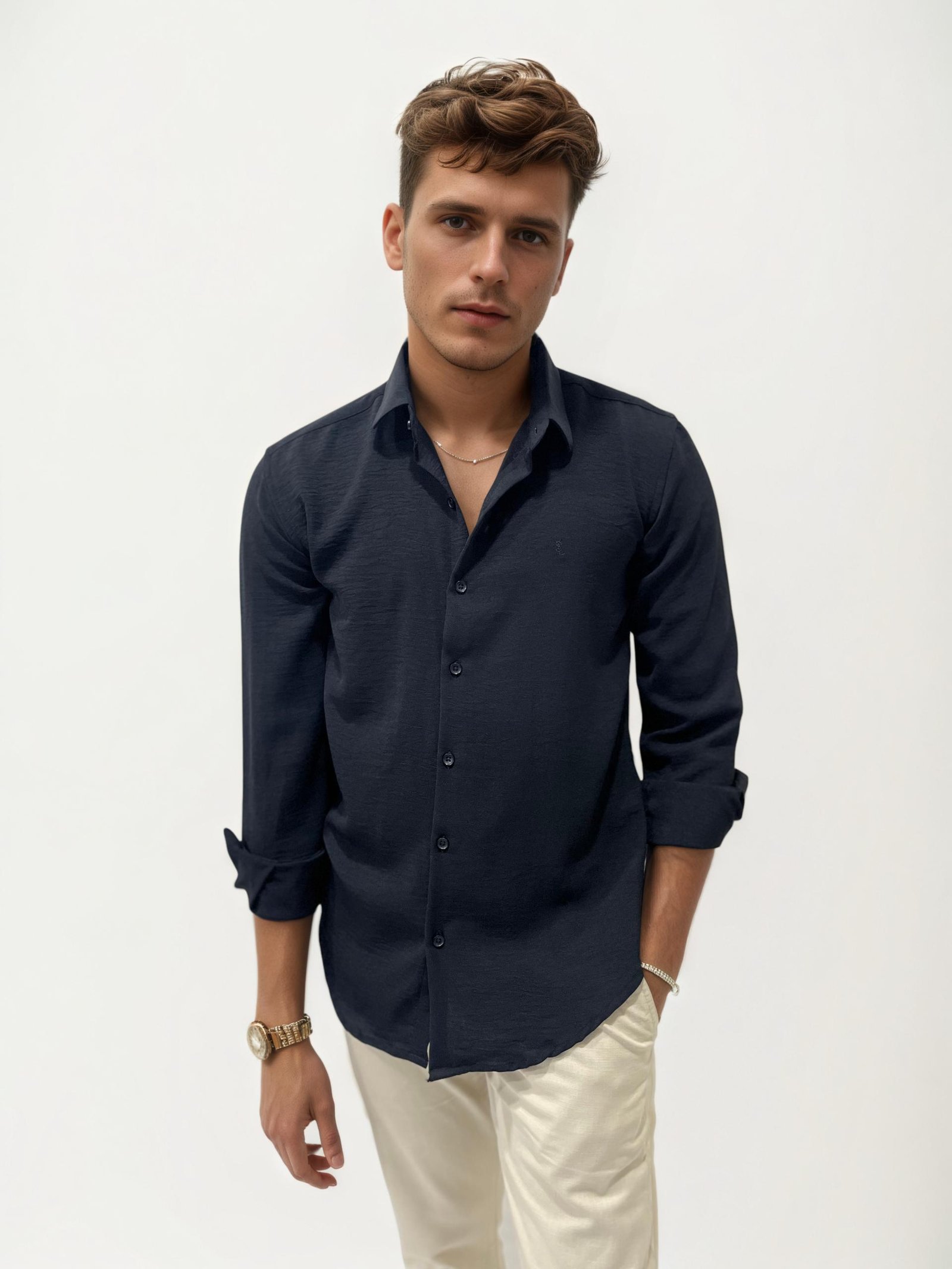 Stand out with subtle texture in our Crushed Line Shirt — a modern take on classic casualwear. Crafted from lightweight, breathable fabric with a naturally crinkled finish, this shirt adds depth and effortless style to your everyday look. The vertical crushed lines give a structured yet relaxed appearance, making it perfect for everything from weekend outings to casual Fridays at work.