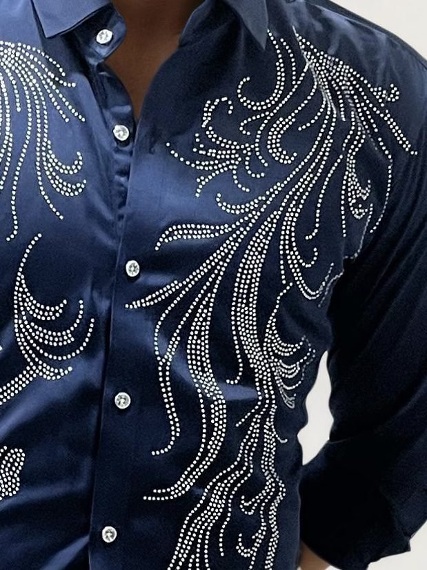 Dark-Blue Stone Work Fullhand Party Wear Shirt