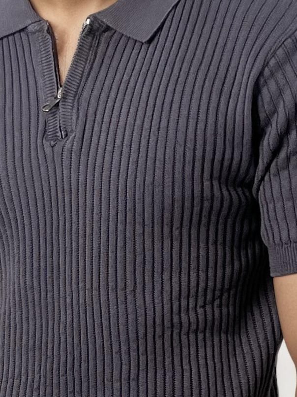 Grey Half Zip Knitted Polo Shirt