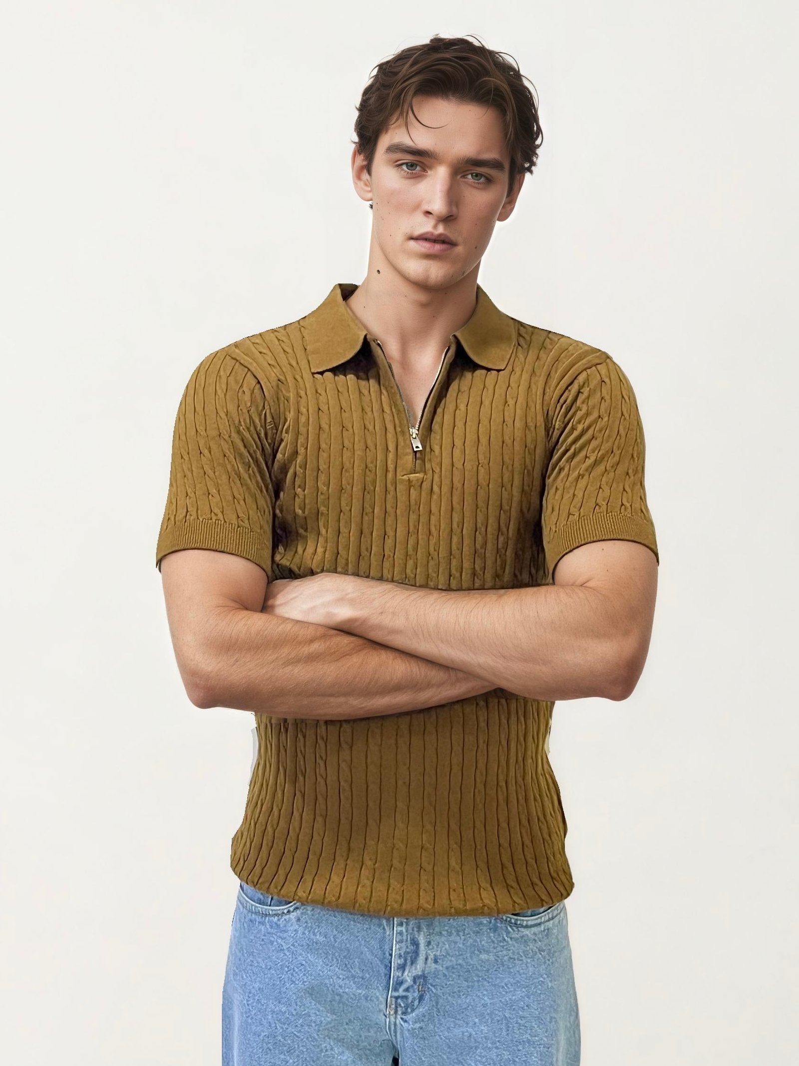 Refresh your smart-casual lineup with this half zip knitted polo shirt. Combining the relaxed charm of a polo with the sleekness of a zip-up, this shirt features a soft knit texture that offers both comfort and understated style. Ideal for weekend brunches, casual Fridays, or laid-back evenings, it’s a refined staple with a modern twist.