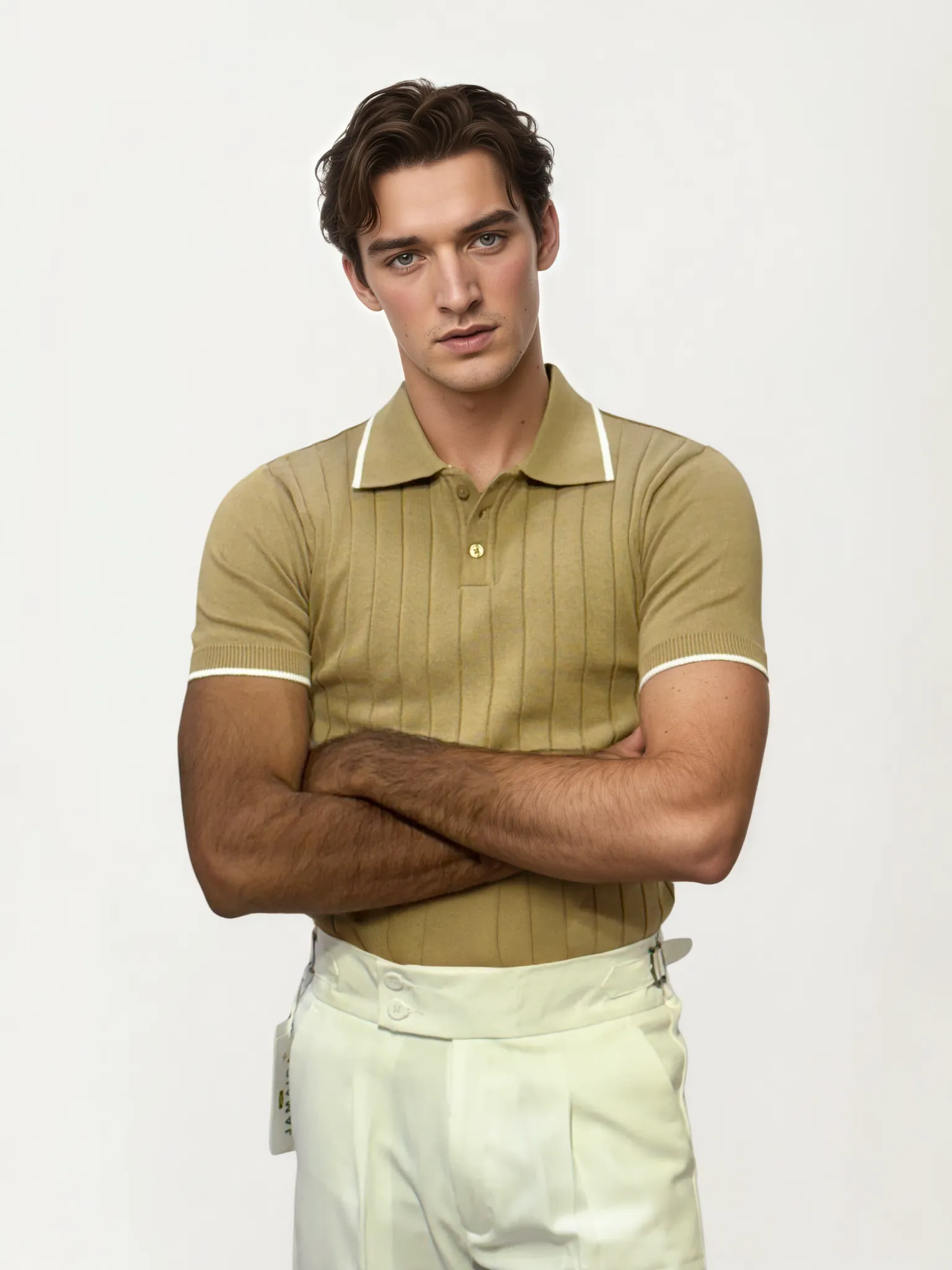 Light-Brown Old-Money Knitted Fabric Polo Shirt