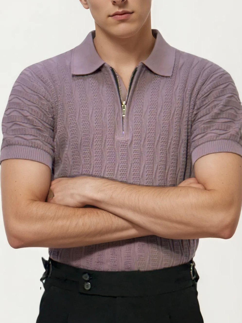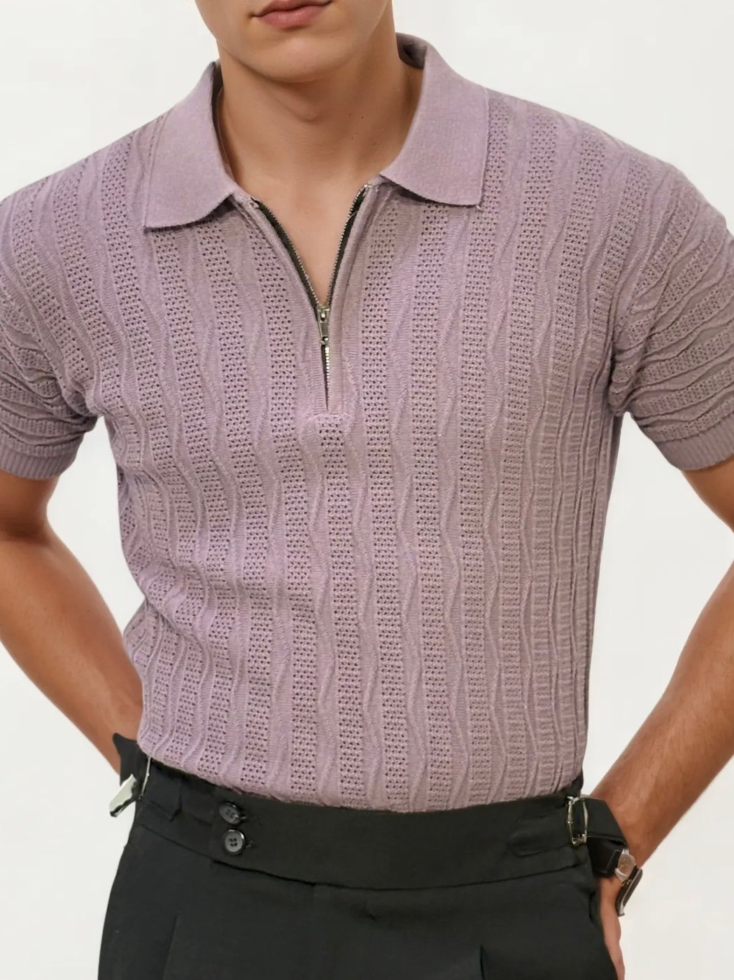Mauve Half Zip Knitted Fabric Polo Shirt