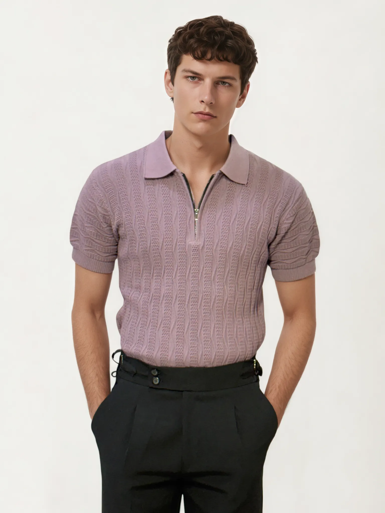 Refresh your smart-casual lineup with this half zip knitted polo shirt. Combining the relaxed charm of a polo with the sleekness of a zip-up, this shirt features a soft knit texture that offers both comfort and understated style. Ideal for weekend brunches, casual Fridays, or laid-back evenings, it’s a refined staple with a modern twist.