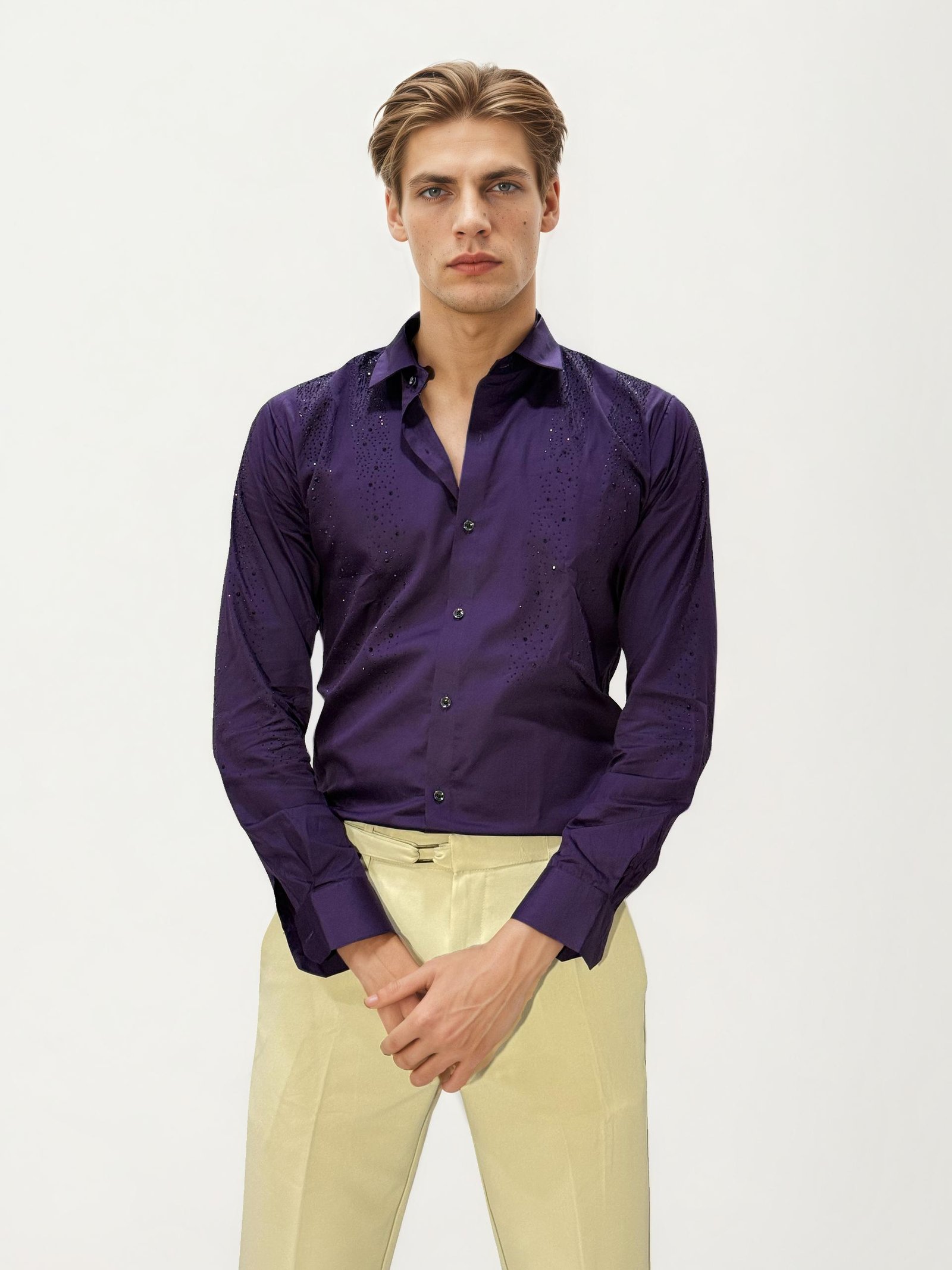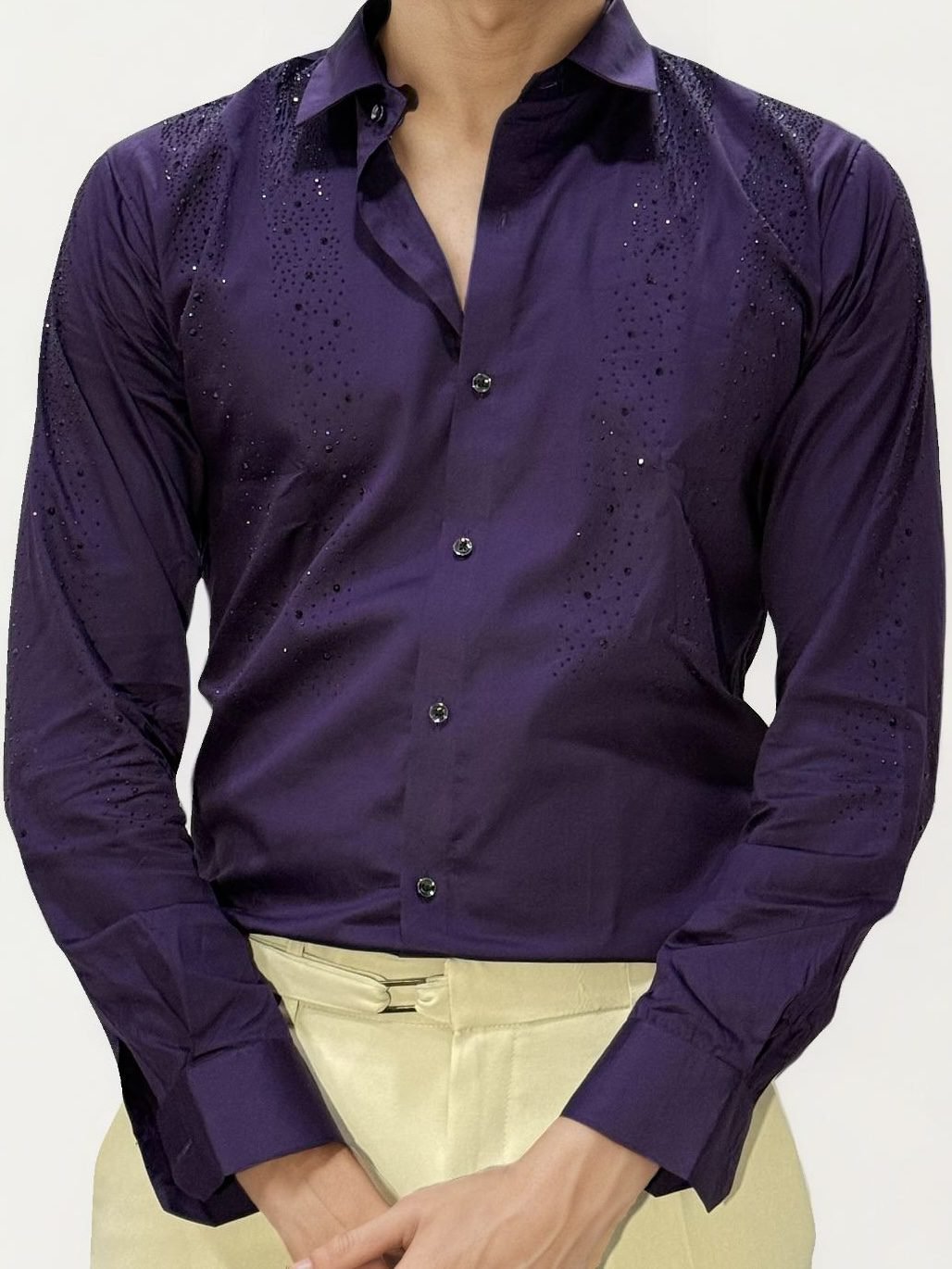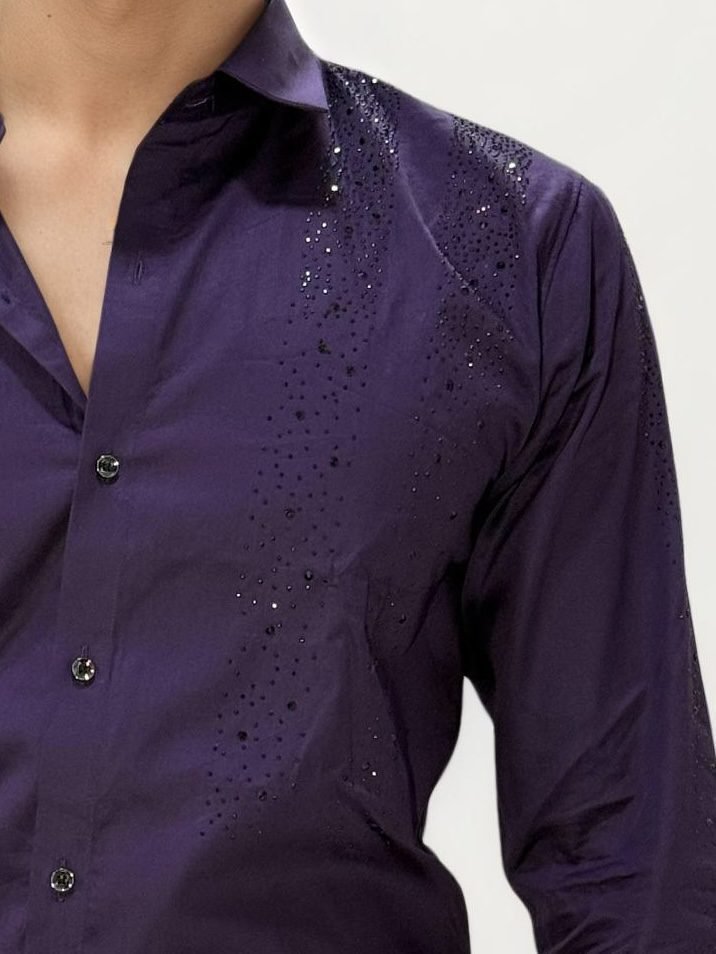 Shine with sophistication in this full-hand stone work party wear shirt. Featuring intricate embellishments that catch the light beautifully, this shirt blends festive glamour with a sleek, tailored fit. Perfect for receptions, celebrations, and evening events, it’s designed to make you stand out with elegance.