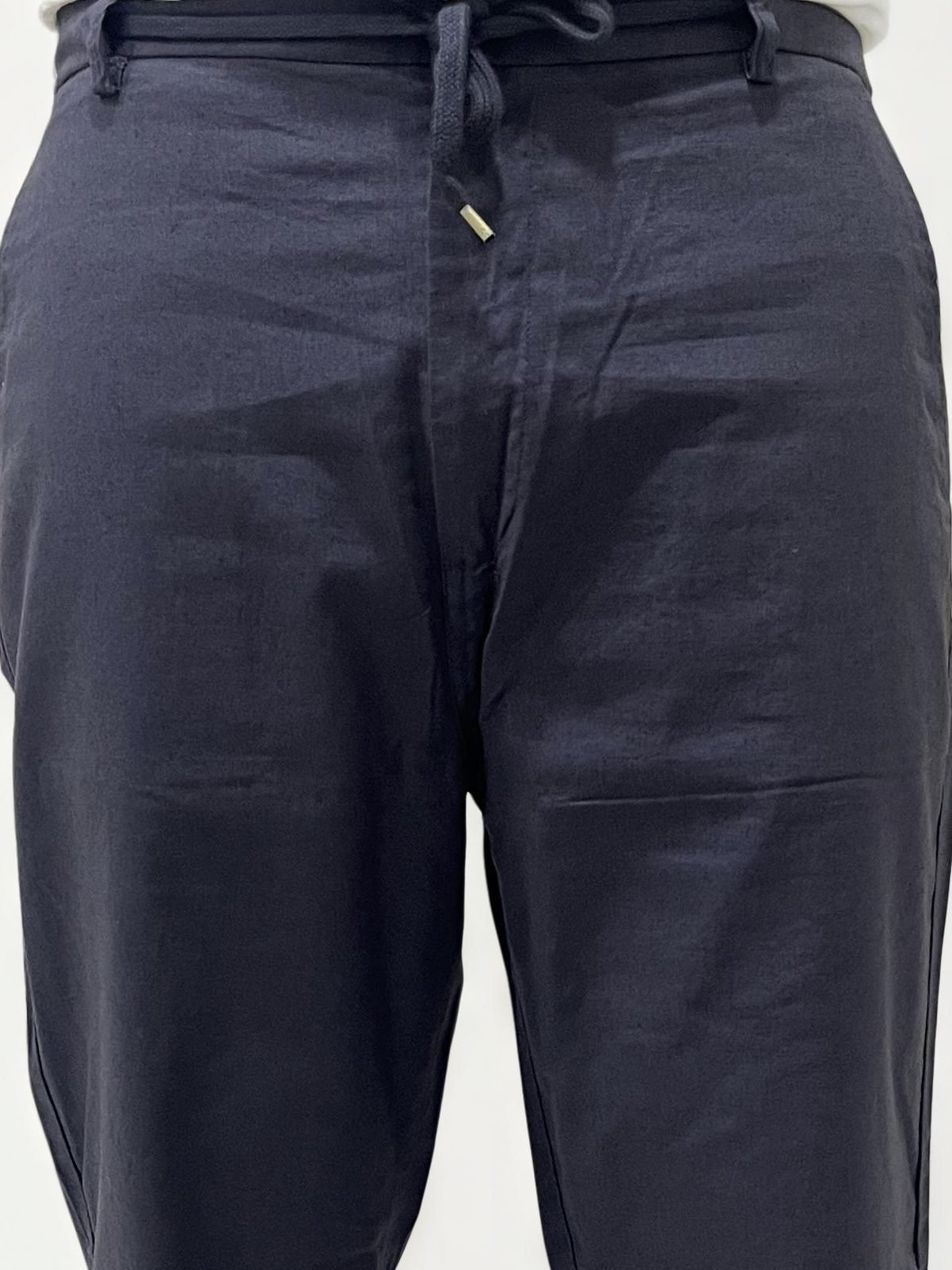 Keep it effortless and sharp with these navy blue casual trousers. Designed for a slim-fit silhouette, these pants feature a clean flat-front style with a drawstring closure that blends comfort with minimal style. The deep navy tone makes it versatile for both relaxed office days and weekend hangouts. Crafted from breathable fabric, it ensures comfort without compromising on looks.