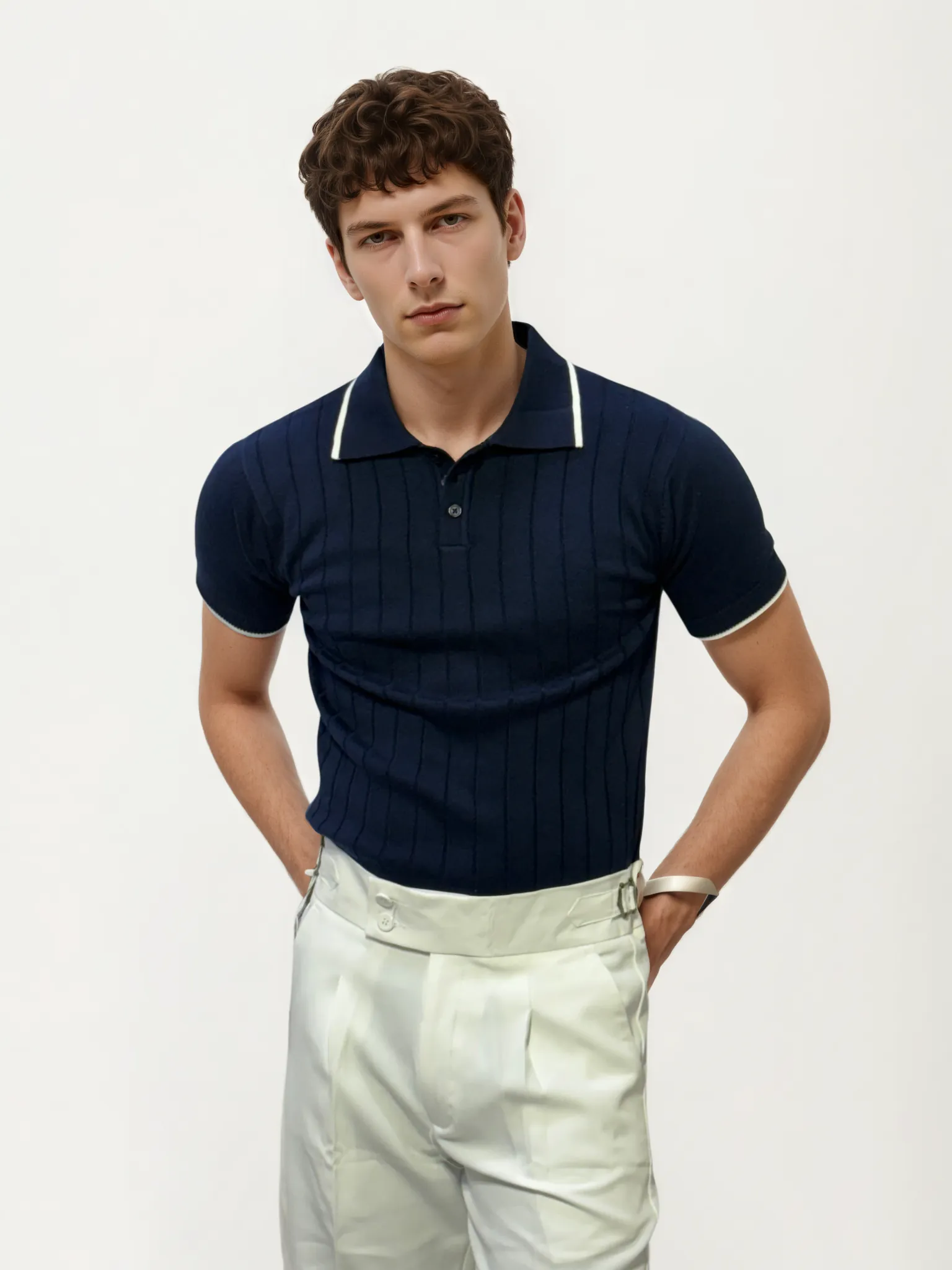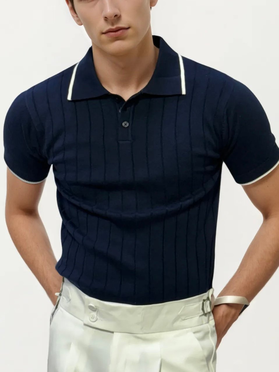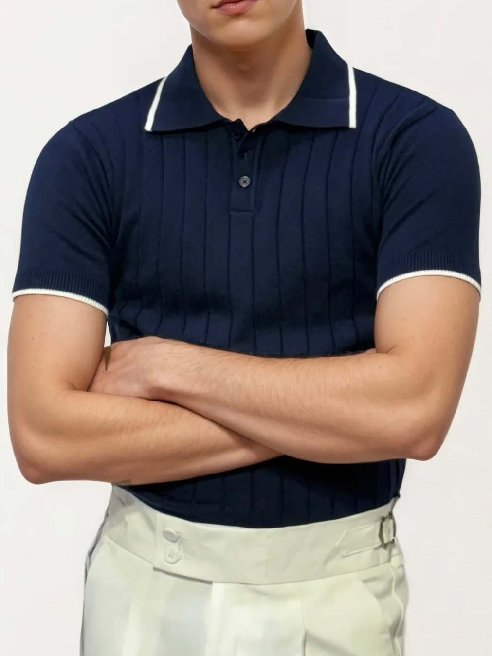 Semi-White Old-Money Knitted Fabric Polo Shirt