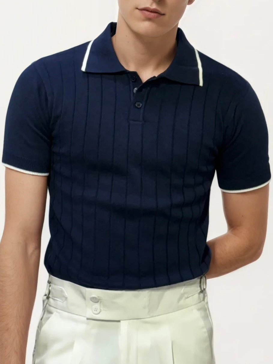Navy-Blue Old-money Knitted Fabric Polo Shirt