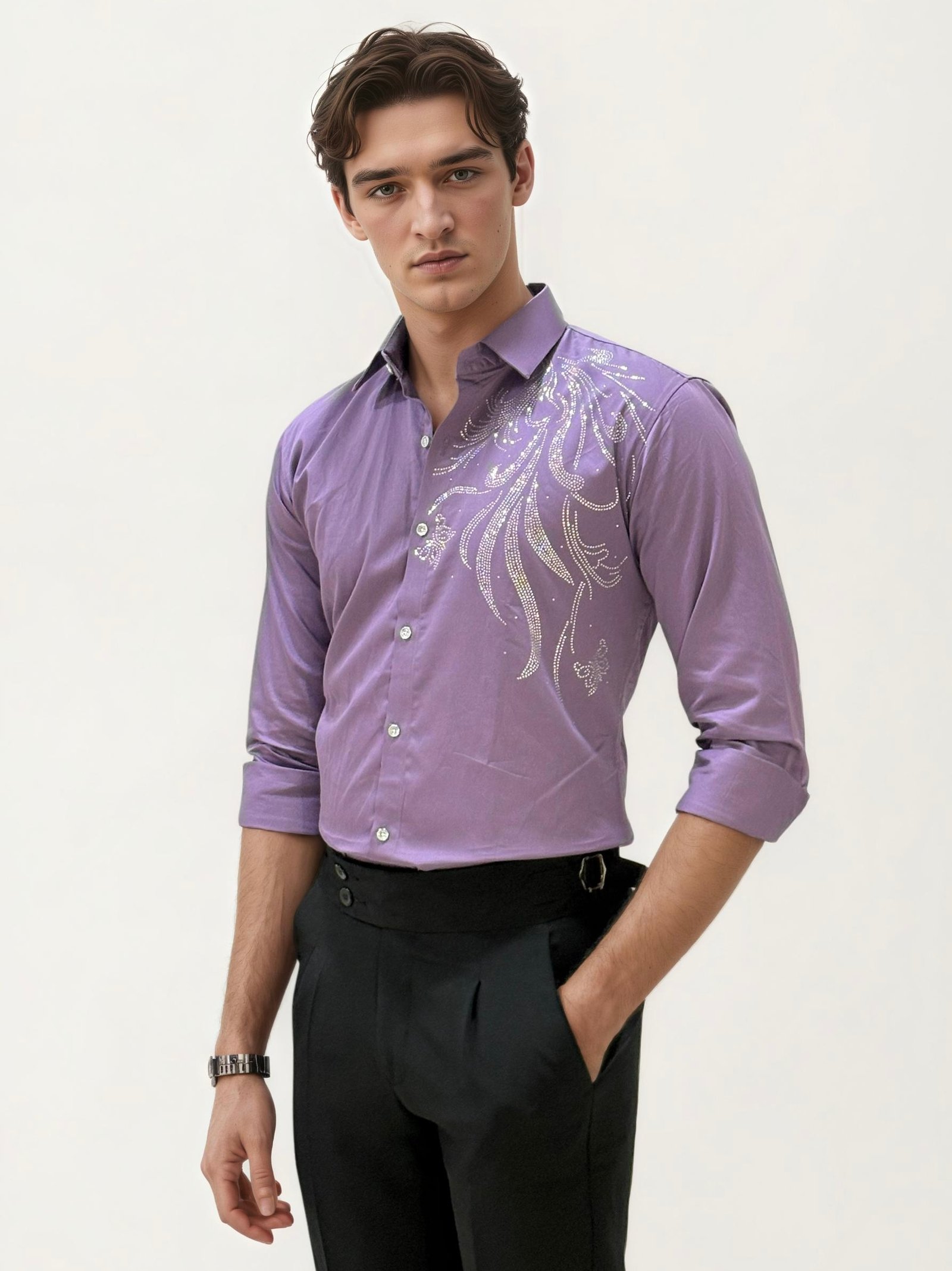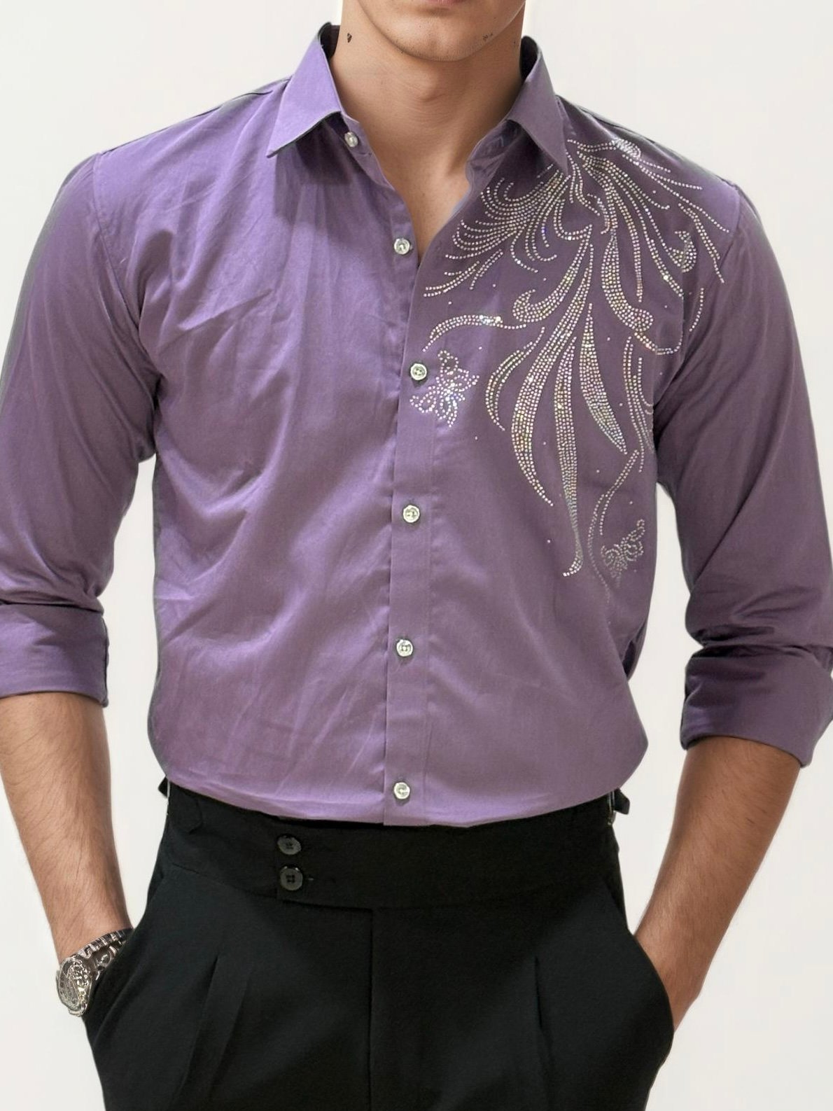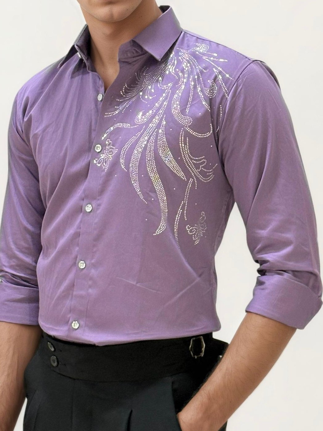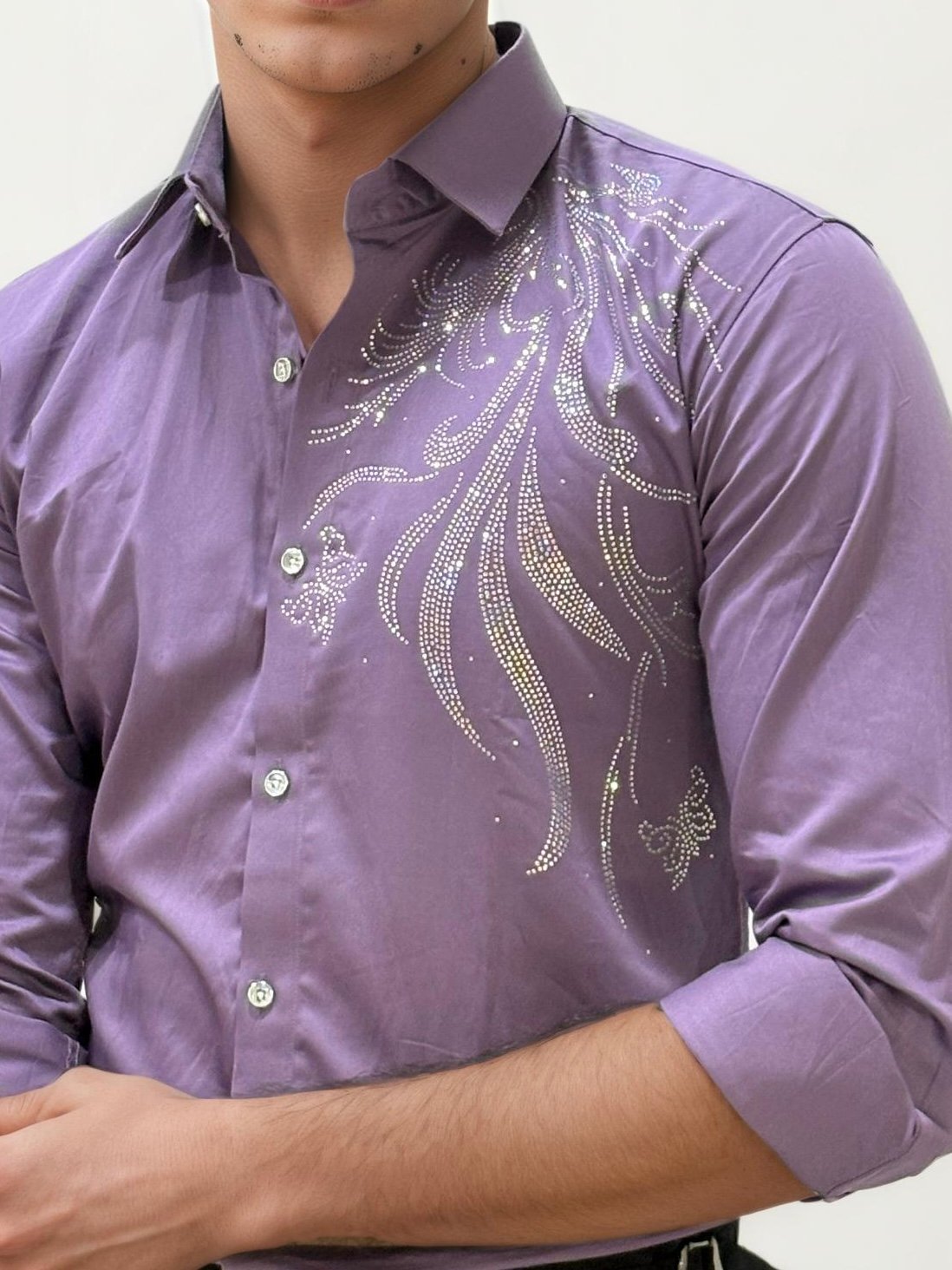 Shine with sophistication in this full-hand stone work party wear shirt. Featuring intricate embellishments that catch the light beautifully, this shirt blends festive glamour with a sleek, tailored fit. Perfect for receptions, celebrations, and evening events, it’s designed to make you stand out with elegance.