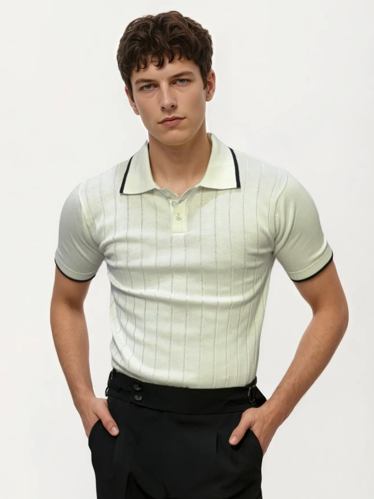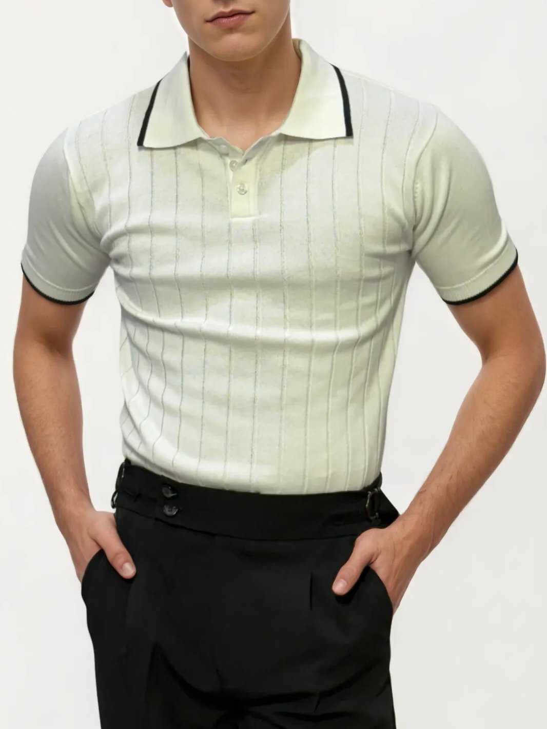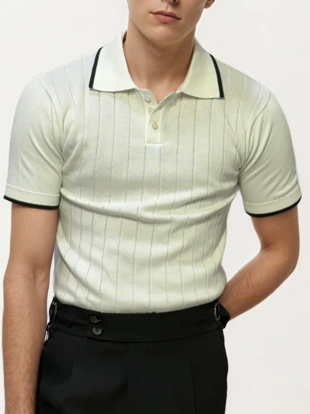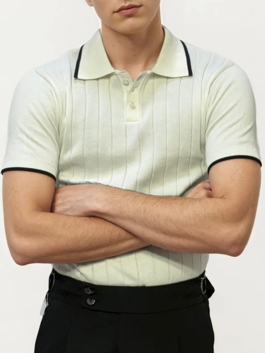Semi-White Old-Money Knitted Fabric Polo Shirt