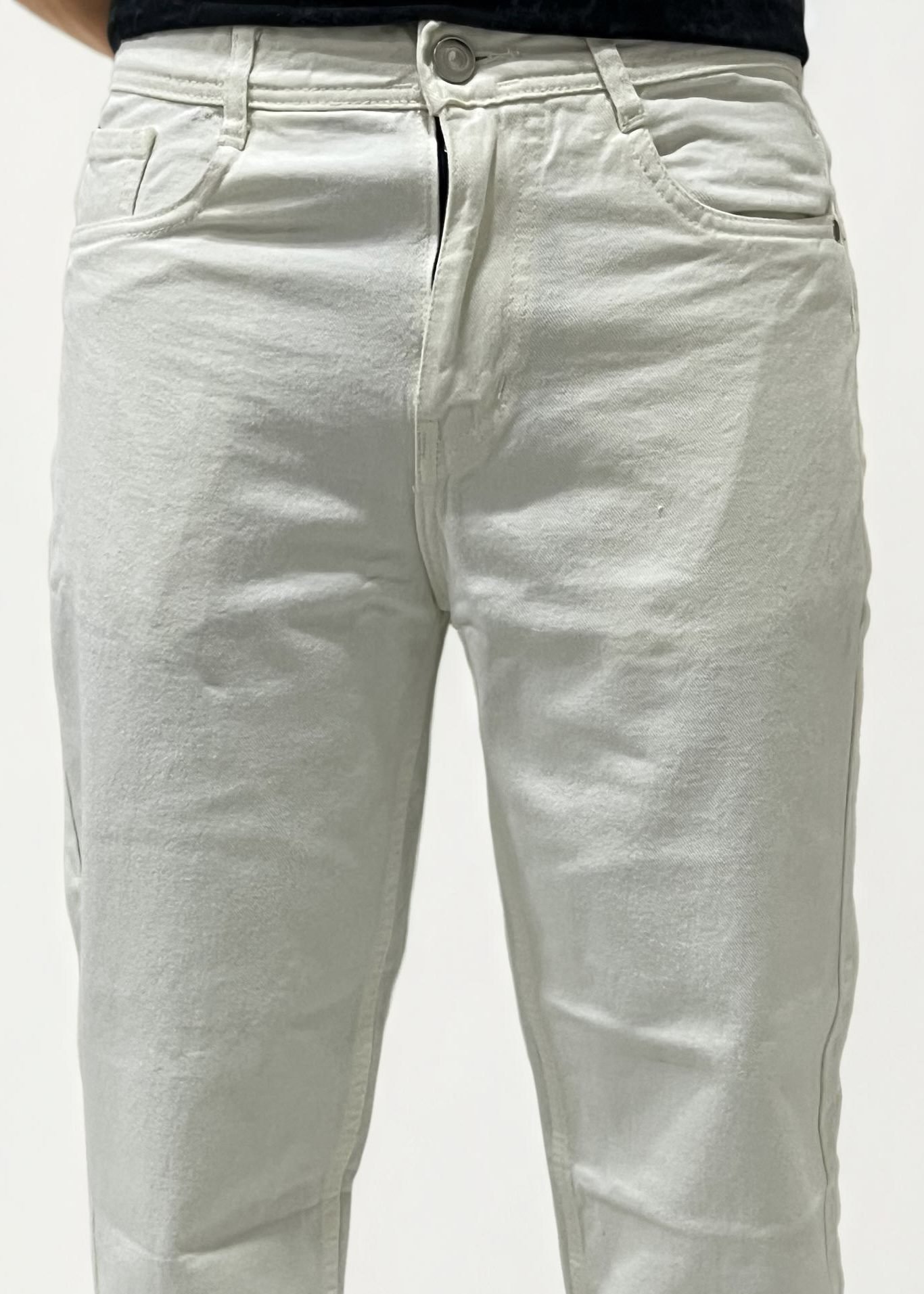 Refresh your denim collection with these semi white regular Fit Jeans, designed for effortless everyday style and comfort. Crafted from soft, stretchable denim, these jeans provide a flattering slim fit that tapers slightly through the legs without compromising on ease of movement. The faded light blue wash adds a clean, contemporary vibe, perfect for both casual and smart-casual occasions. Finished with classic five-pocket styling, a mid-rise waist, and a button-and-zip closure, these jeans are a staple for a modern, versatile wardrobe.