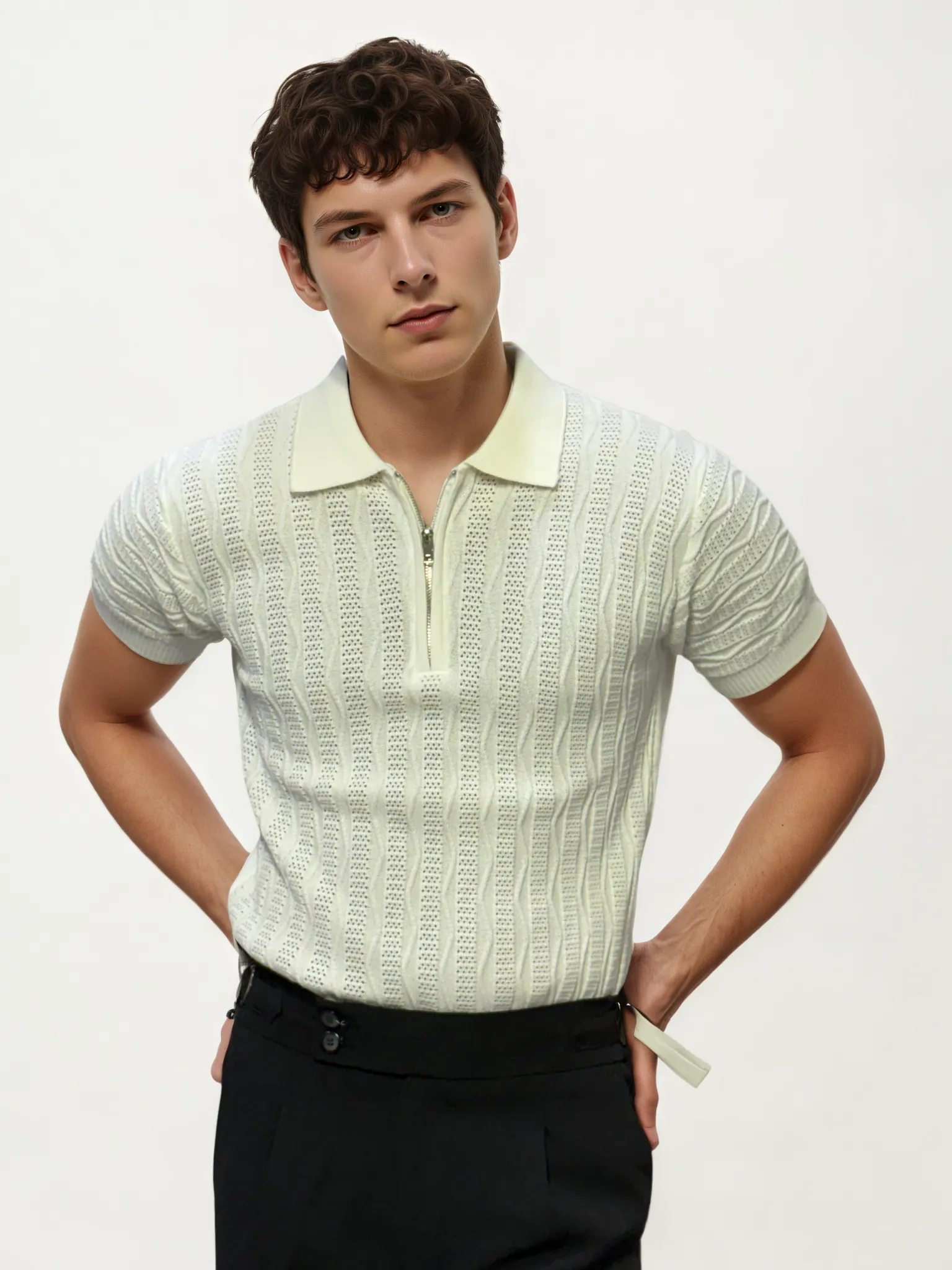 Semi-White Old-Money Knitted Fabric Polo Shirt