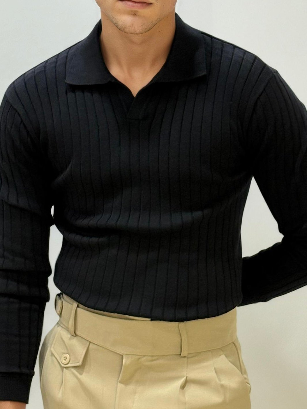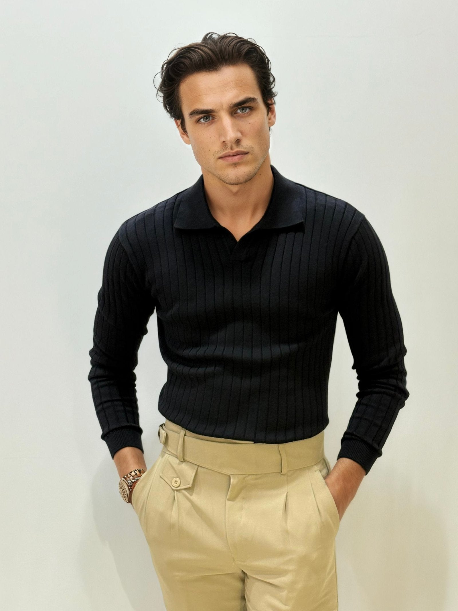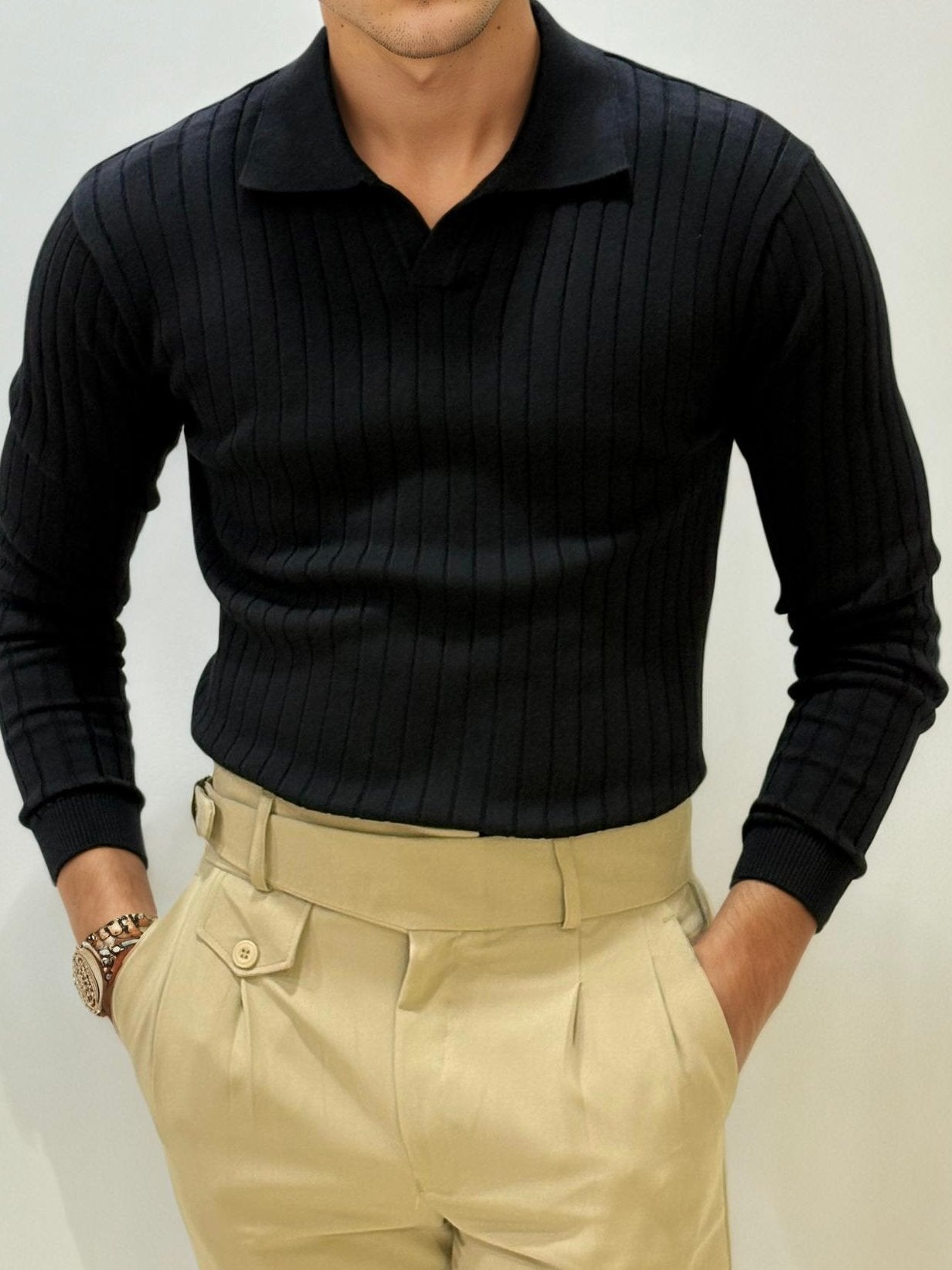 Pair it with chinos or pleated trousers for a polished, effortlessly stylish ensemble.