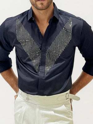 Shine with sophistication in this full-hand stone work party wear shirt. Featuring intricate embellishments that catch the light beautifully, this shirt blends festive glamour with a sleek, tailored fit. Perfect for receptions, celebrations, and evening events, it’s designed to make you stand out with elegance.