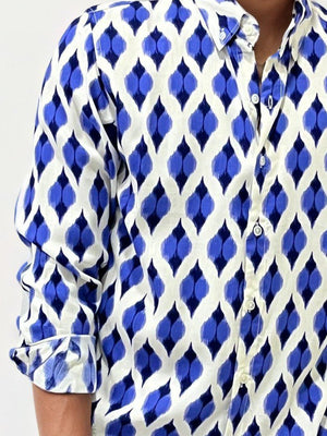 Blue Viscose Regular Fit Printed Shirt