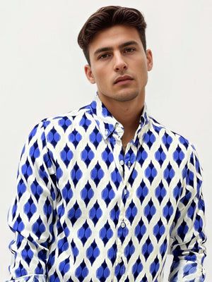 Blue Slim Fit Printed Shirt
