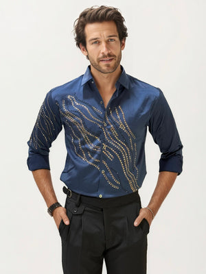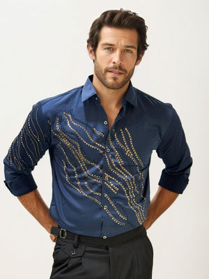 Dark Blue Stone Work Party Wear Shirt