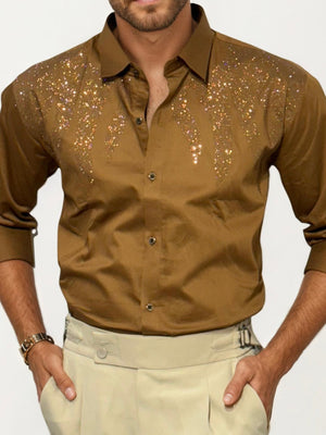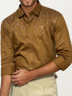 Shine with sophistication in this full-hand stone work party wear shirt. Featuring intricate embellishments that catch the light beautifully, this shirt blends festive glamour with a sleek, tailored fit. Perfect for receptions, celebrations, and evening events, it’s designed to make you stand out with elegance.