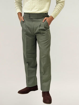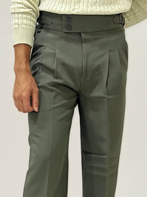 Green Double-button Regular Fit Trousers
