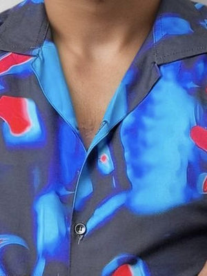 Blue Viscose Regular Fit Printed Shirt