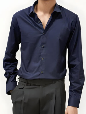 Navy Blue Slim Fit Plain Shirt