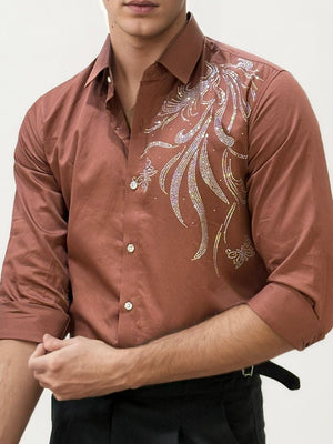Shine with sophistication in this full-hand stone work party wear shirt. Featuring intricate embellishments that catch the light beautifully, this shirt blends festive glamour with a sleek, tailored fit. Perfect for receptions, celebrations, and evening events, it’s designed to make you stand out with elegance.