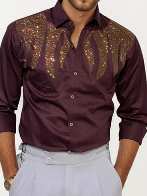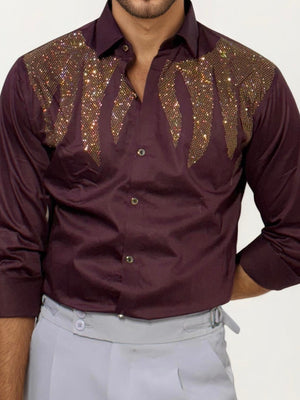 Shine with sophistication in this full-hand stone work party wear shirt. Featuring intricate embellishments that catch the light beautifully, this shirt blends festive glamour with a sleek, tailored fit. Perfect for receptions, celebrations, and evening events, it’s designed to make you stand out with elegance.