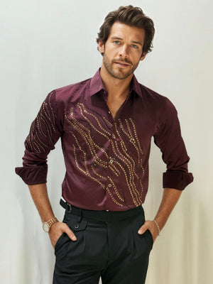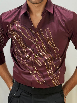 Shine with sophistication in this full-hand stone work party wear shirt. Featuring intricate embellishments that catch the light beautifully, this shirt blends festive glamour with a sleek, tailored fit. Perfect for receptions, celebrations, and evening events, it’s designed to make you stand out with elegance.